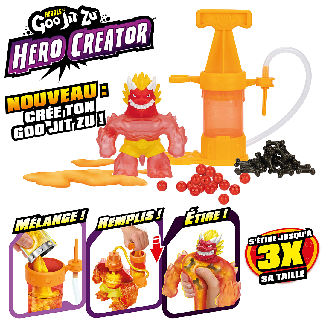 Pour la première fois, crée toi-même la texture qui se trouve à l'intérieur de ton Goo Jit Zu Blazagon grâce à la pompe et les ingrédients fournis dans le pack !
