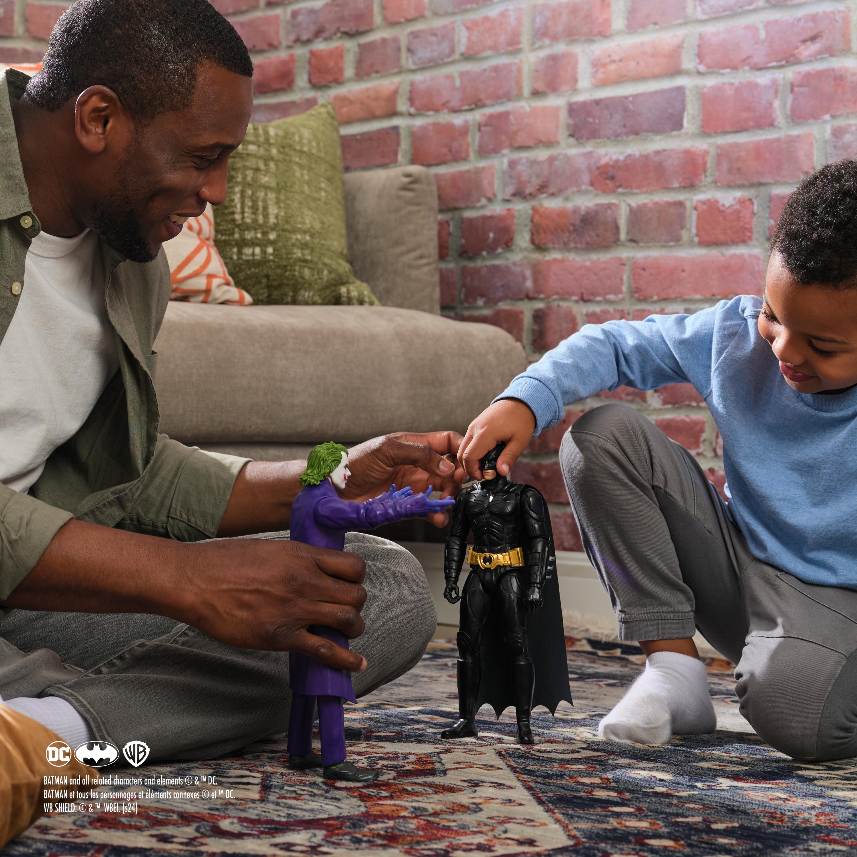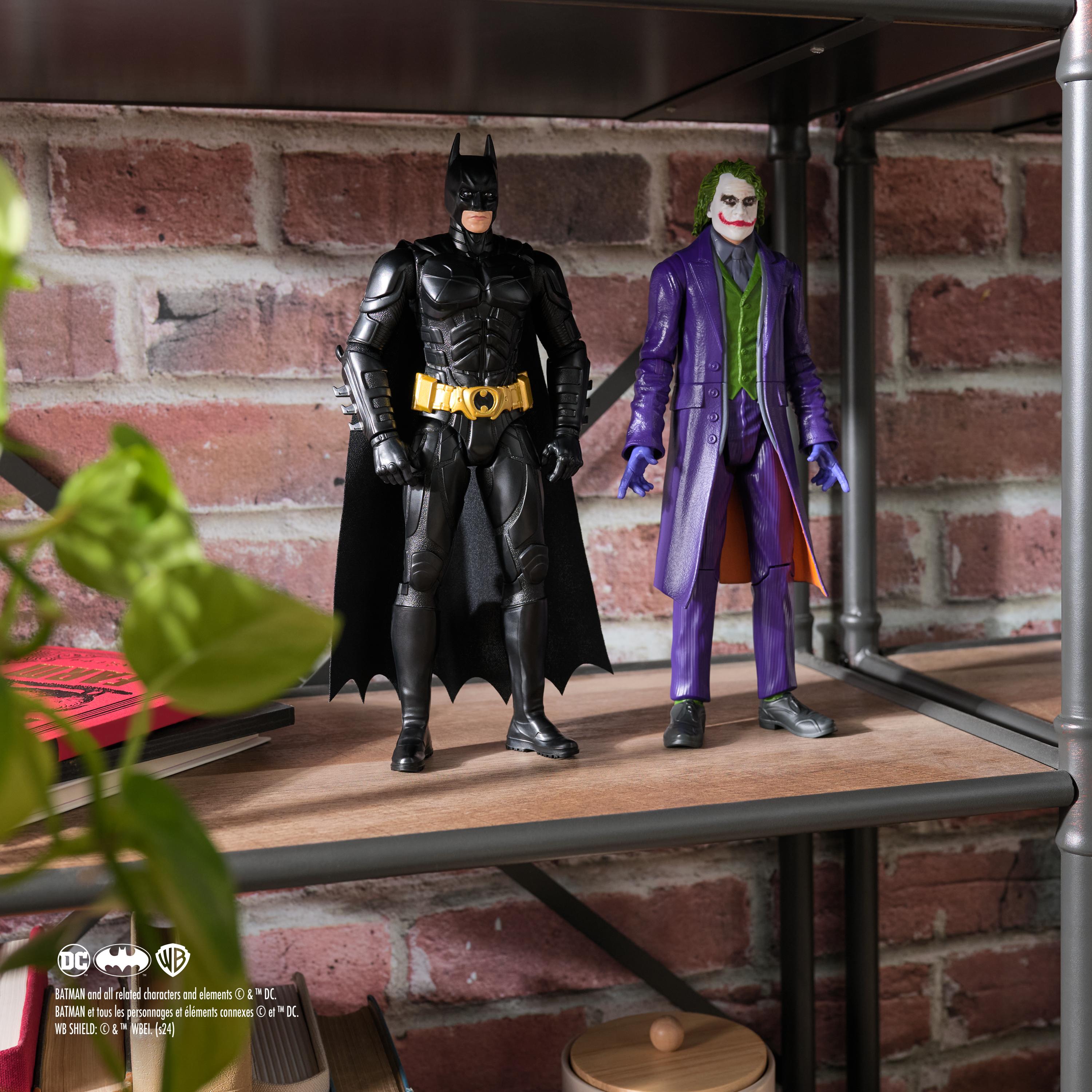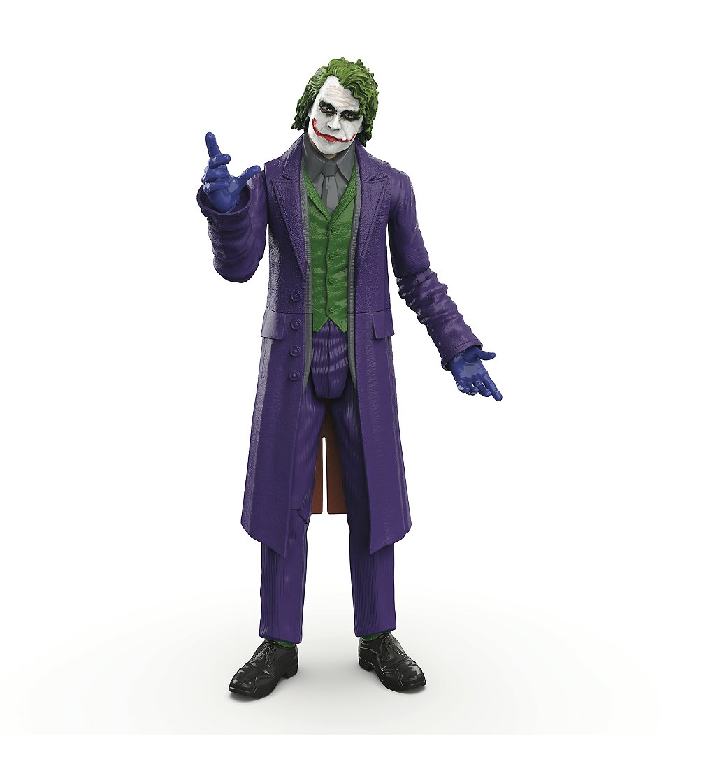 Une figurine articulée thématique de l'univers Batman issue du film The Dark Knight. Modèle Le Joker. Taille : environ 30 cm. Dès 3 ans.