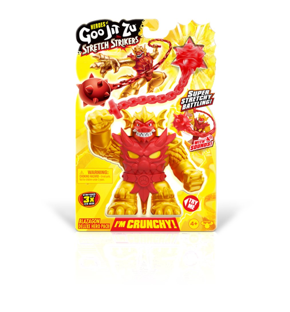 L'original Heroes Of Goo Jit Zu Stretch STRIKERS ! Retrouve ton héros, Blazagon, avec son allure de guerrier, son arme extensible, et ses rugissements sonores féroces !