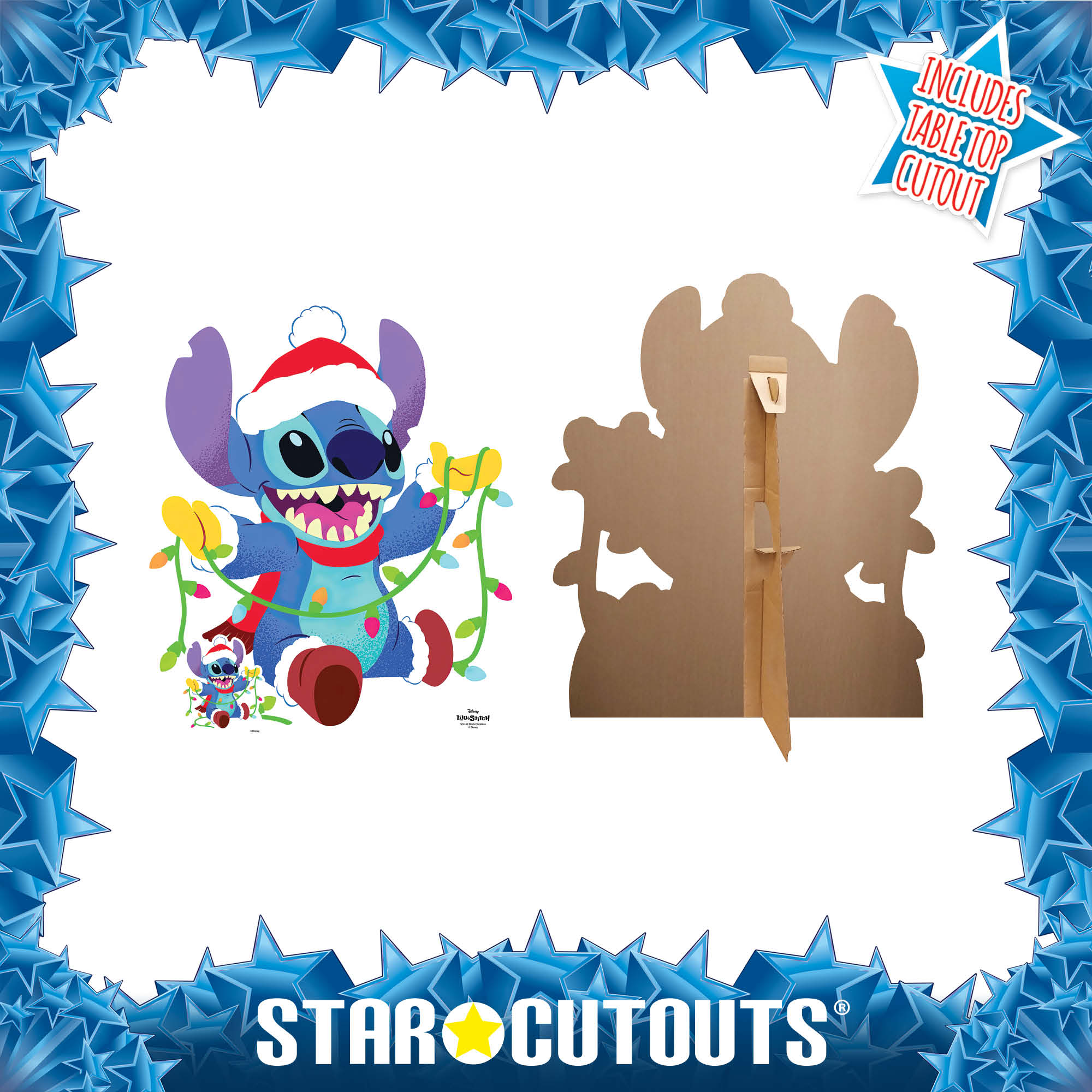 La figurine en carton de Noël de Stitch, personnage marquant des fêtes de Noël, est une déco originale et super pratique pour tous vos évènements.