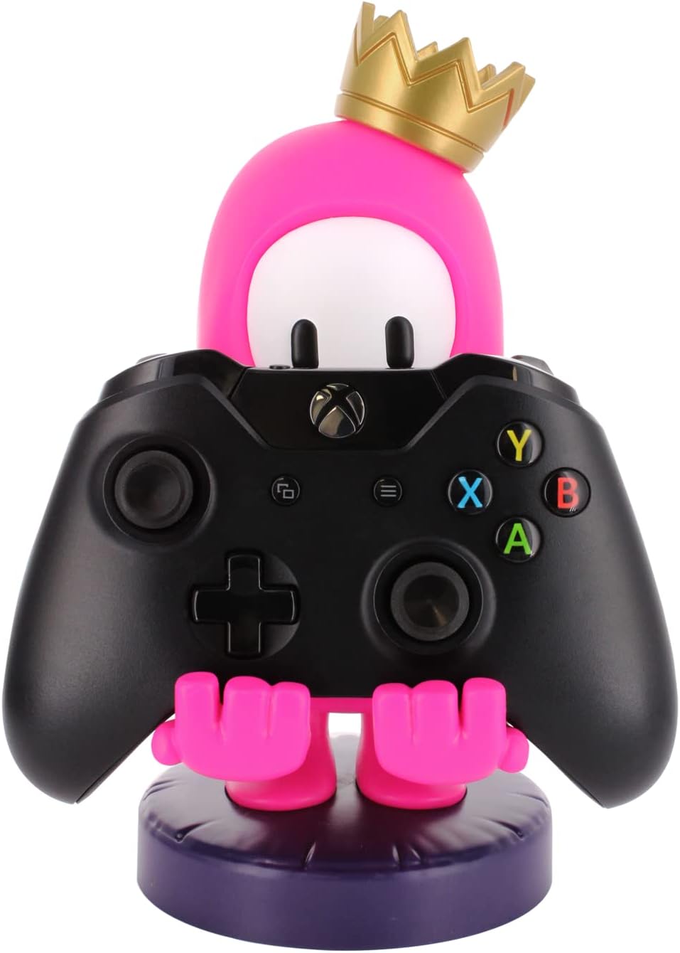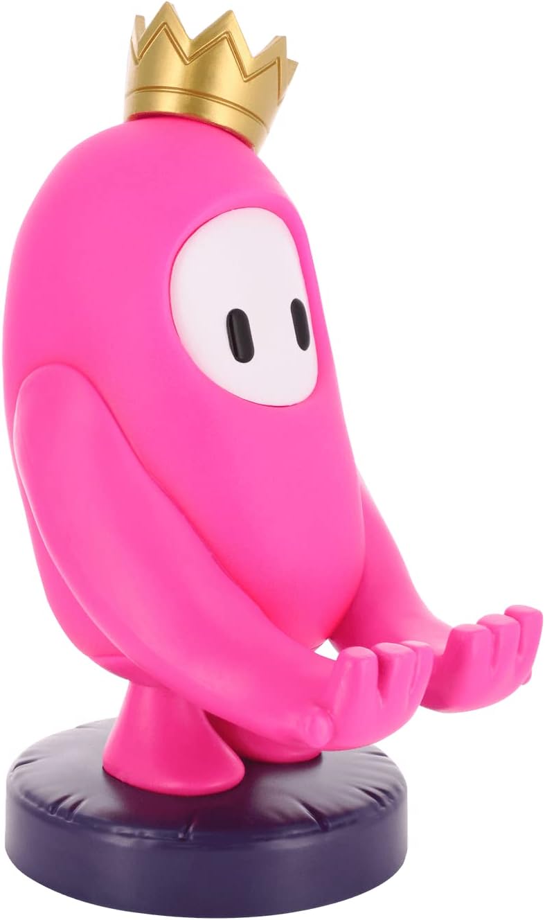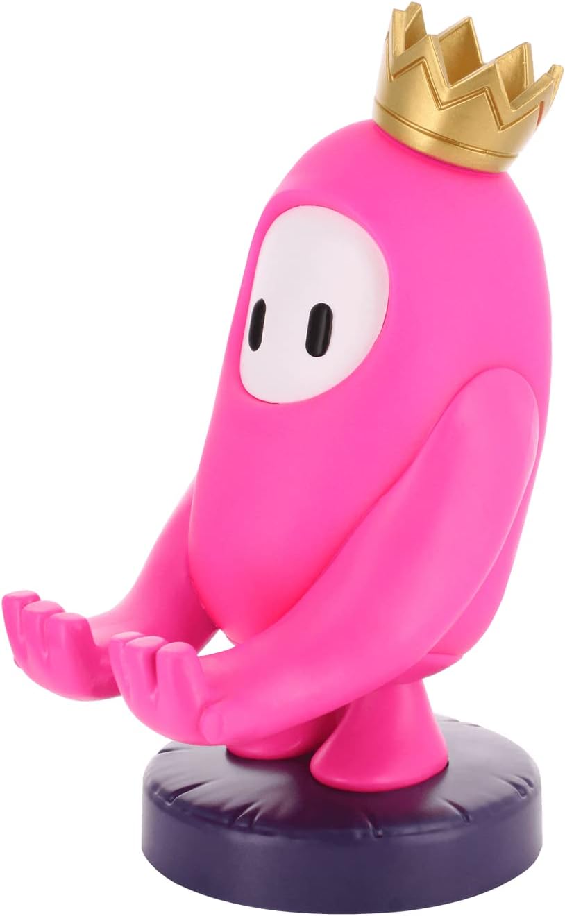 Support Fall Guys de 20 cm, qui peut servir à contenir et à charger les manettes de jeux ou les smartphones. Ce support est à l'effigie d'un personnage du jeu vidéo Fall Guys, de couleur rose. Il est fourni avec un câble micro-USB de 2 m. Ce support est un accessoire pratique et original pour les joueurs de Fall Guys ou les amateurs de jeux vidéo.