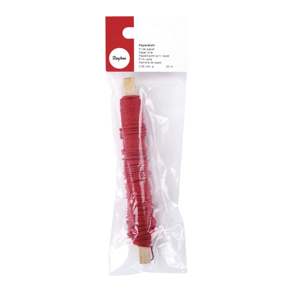 Fil de papier , 0,55mm ø, rouge classique, sur bobine en bois à 50g, 20m