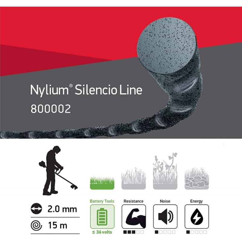 Libellé Fil débroussailleuse Rond Torsade Nylium Silencio Noir ø2.0mm/15m Oregon 800002