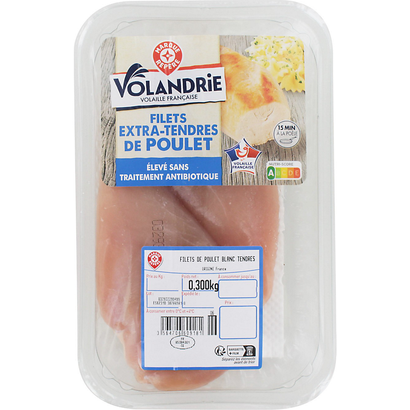 Filets de poulet blanc extra tendre sans antibiotiques x 2 - 300 g - VOLANDRIE