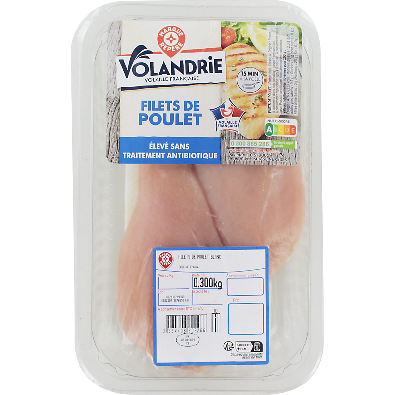 Filets de poulet blanc sans antibiotiques - 300 g - VOLANDRIE