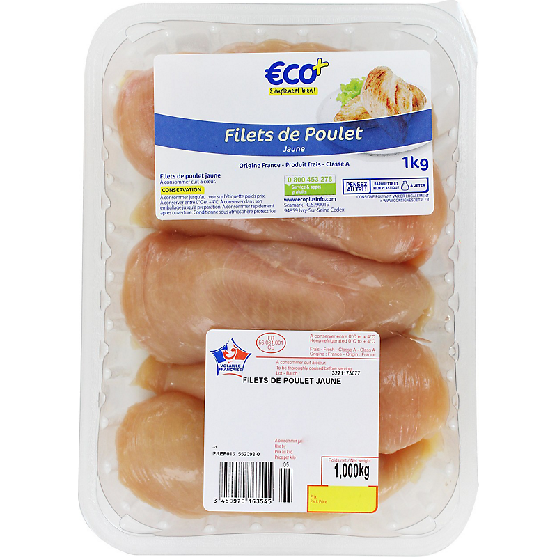 Filets de poulet jaune - 1 kg - ECO +