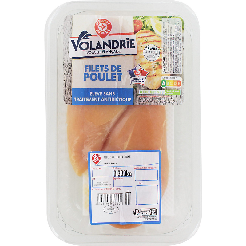 Filets de poulet jaune sans antibiotiques - 300 g - VOLANDRIE