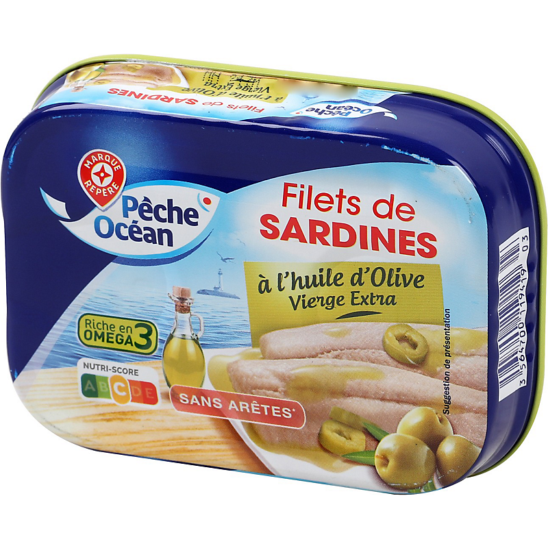 | Origine des principaux ingrédients | SARDINE PECHEE EN : OCEAN ATLANTIQUE CENTRE-EST, OLIVE ORIGINE : ESPAGNE ET/OU MAROC* * SELON LES APPROVISIONNEMENTS ET/OU LES CARACTÉRISTIQUES GUSTATIVES RECHERCHÉES |