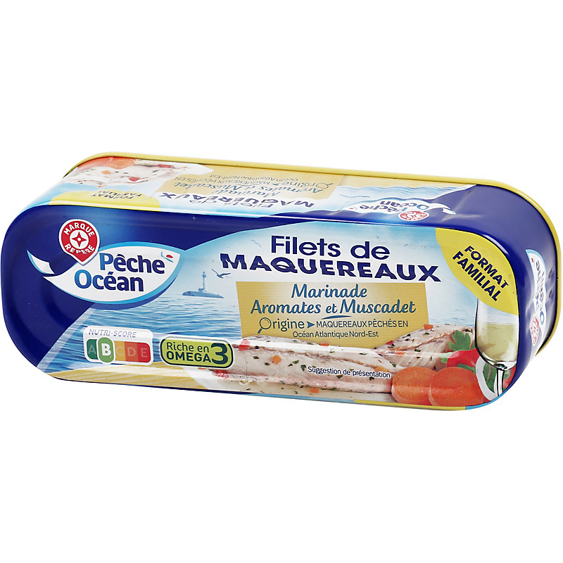 | Origine des principaux ingrédients | ORIGINE MAQUEREAUX PECHES EN : OCEAN ATLANTIQUE NORD-EST, POIVRON ORIGINE : EUROPE, CAROTTE ORIGINE : EUROPE, CORNICHON ORIGINE : INDE ET/OU EUROPE*, MUSCADET ORIGINE : FRANCE, OIGNON ORIGINE : EUROPE, PERSIL ORIGINE : EUROPE * SELON LES APPROVISIONNEMENTS ET/OU LES CARACTÉRISTIQUES GUSTATIVES RECHERCHÉES |