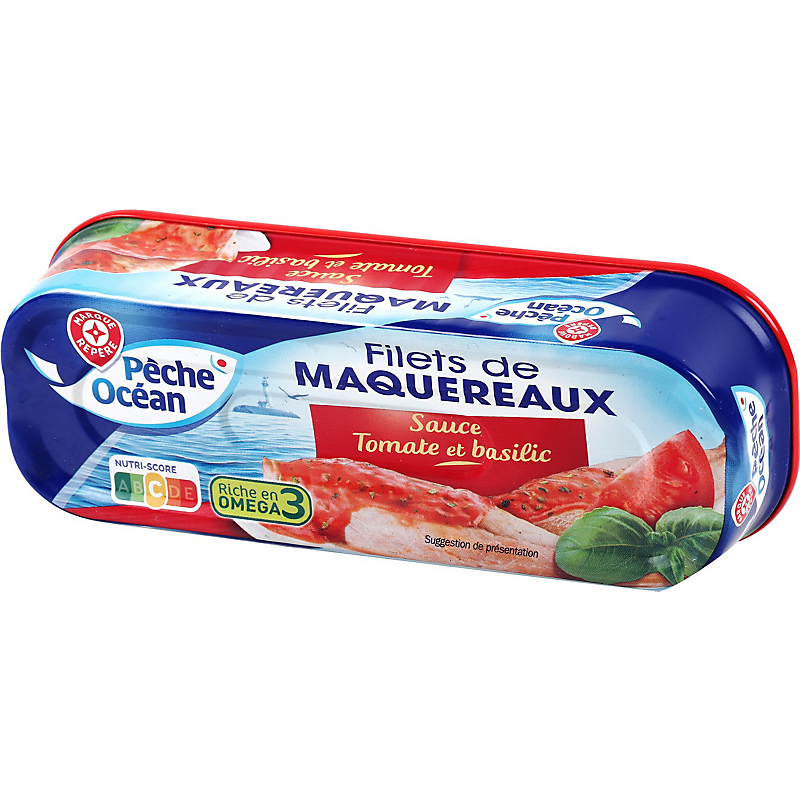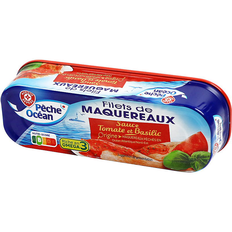| Origine des principaux ingrédients | MAQUEREAU PÊCHÉ EN : OCÉAN ATLANTIQUE NORD-EST, TOMATE ORIGINE : ASIE ET/OU EUROPE*, BASILIC ORIGINE : EUROPE * SELON LES APPROVISIONNEMENTS ET/OU LES CARACTÉRISTIQUES GUSTATIVES RECHERCHÉES |