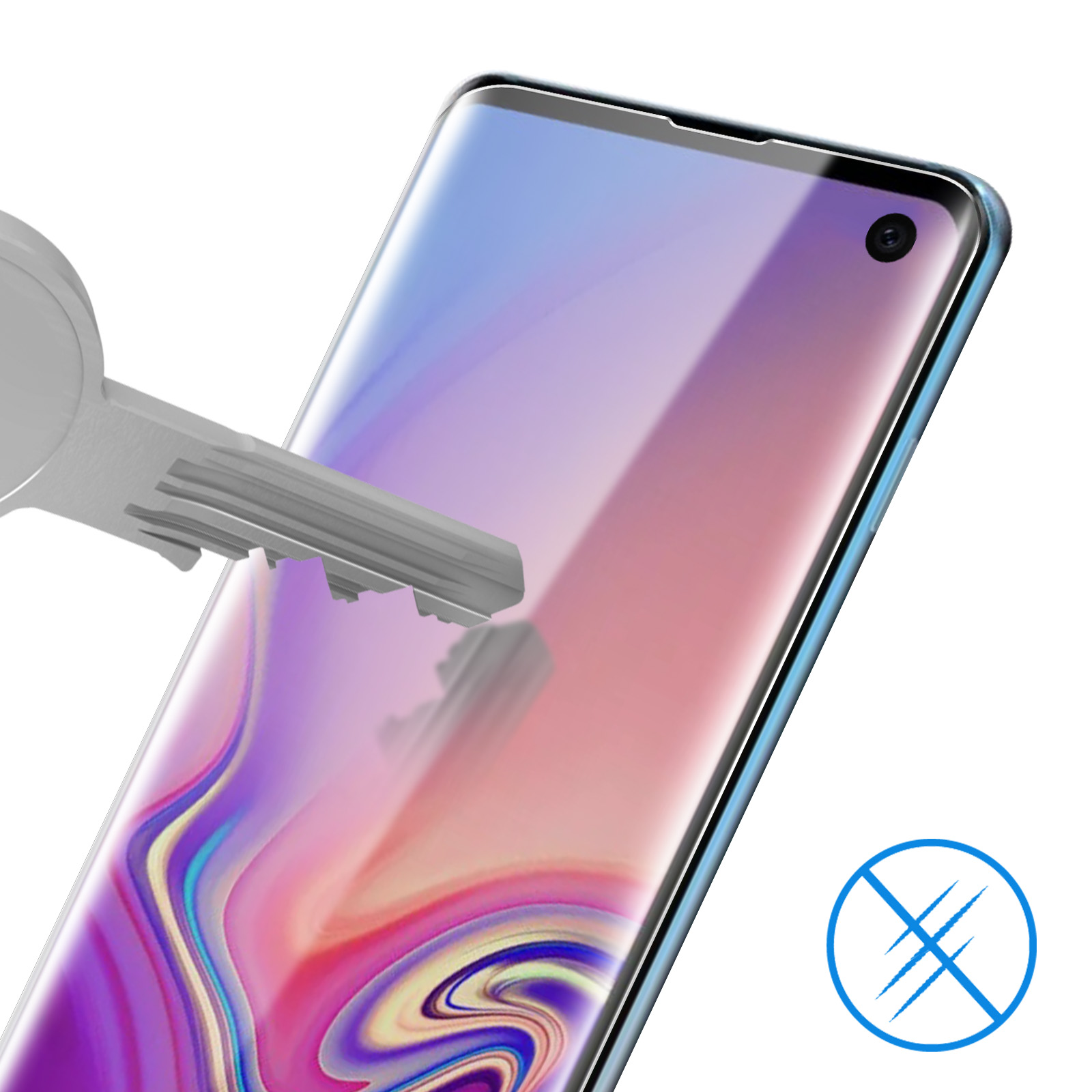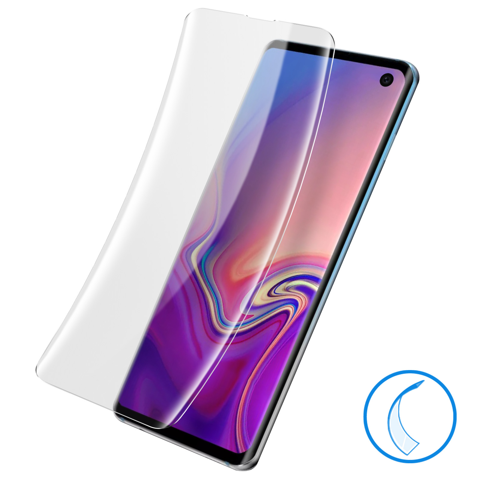 Film écran en latex flexible pour Samsung Galaxy S10. Protection intégrale jusqu'aux bords incurvés du mobile contre les chocs et les rayures. Flexible pour mieux résister aux rayures. Ultra-fin et transparent. Fonctionnalités accessibles.