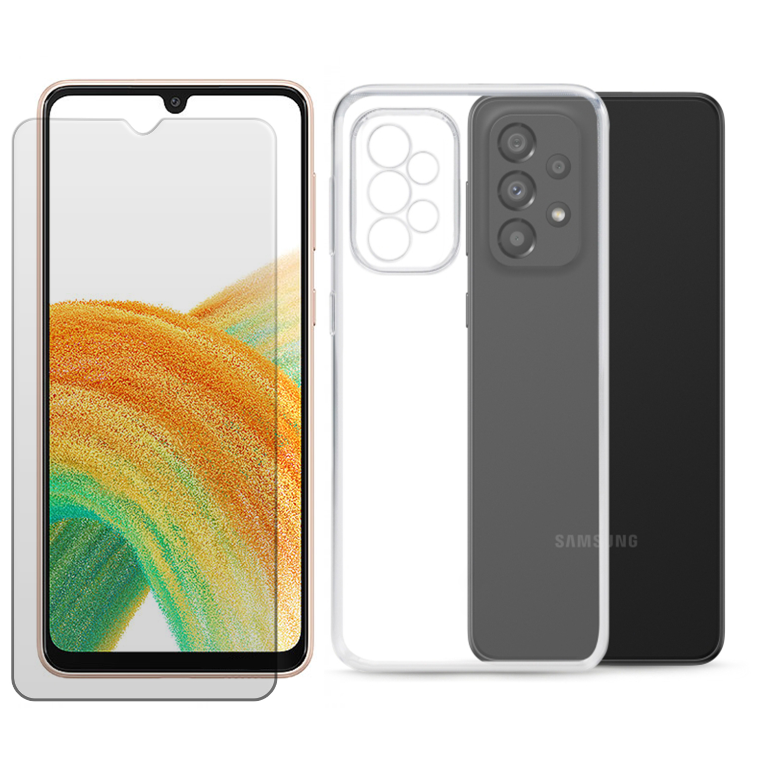 Film verre trempé pour Samsung Galaxy A33 5G SM-A336B SM-A336E taille 6.4" + Coque de protection souple -