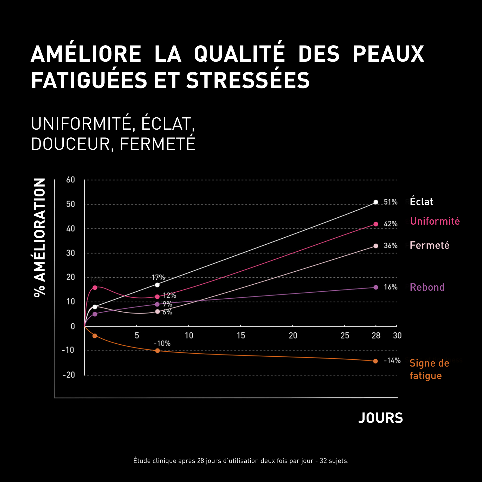 Découvrez NCEF-REVITALIZE NIGHT, une crème de nuit anti-âge conçue pour stimuler la régénération cellulaire pendant le sommeil et améliorer la qualité des peaux fatiguées et stressées. Nuit après nuit,la peau est d'apparence plus jeune, plus éclatante et revitalisée. Sa formule hautement concentrée en NCEF - un complexe unique développé par FILORGA et inspiré des injections anti-âge revitalisantes - est associée à un trio d'actifs. Un peptide anti-rides (Matrikines), aide à accélérer la réparation naturelle de la peau offrant une peau plus ferme. Un extrait de plante apaisante, Tephrosia Purpurea, reconnu pour agir sur l'hormone du stress, protège la peau du stress oxydatif et ravive l’éclat du teint. Enfin, la niacinamide (2%) unifie le teint, renforce la barrière de la peau et atténue les rougeurs et les tâches. Au réveil, les traits du visage sont reposés, la peau est plus lisse et le teint rayonnant. RESULTATS : Les résultats cliniques démontrent que dès 7 jours, le teint est +17% plus éclatant et +12% plus homogène*. Après 28 jours, les résultats s'intensifient: +51% d'éclat et +42% d'uniformité**. LA TEXTURE : Formulé pour tous les types de peaux, même les plus sensibles, la crème nuit visage NCEF-REVITALIZE NIGHT offre une texture gel enveloppante, à pénétration rapide. Conseils d’utilisation : Cette crème visage de nuit s'applique le soir, sur l’ensemble du visage et du cou. Le + : • Formulé avec 90% d'ingrédients d'origine naturelle. Efficacité cliniquement prouvée. Testé sous contrôle dermatologique. *Évaluation clinique après 7 jours d'utilisation - 32 sujets. **Évaluation clinique après 28 jours d'utilisation - 32 sujets.