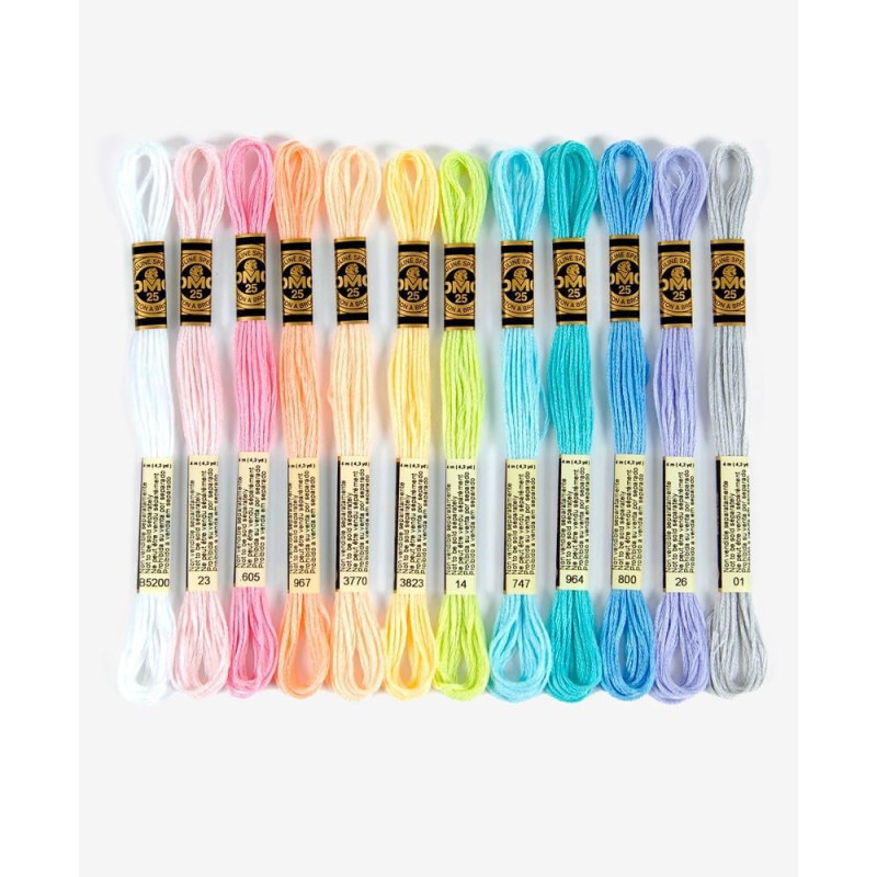 Laissez libre cours à votre créativité avec ce pack de 12 échevettes de fil Mouliné 117MC de la marque DMC. Conçues pour les passionnés de broderie et de point de croix, ces échevettes offrent une gamme de coloris pastels, idéale pour réaliser des motifs délicats et charmants, notamment pour des thèmes de naissance.