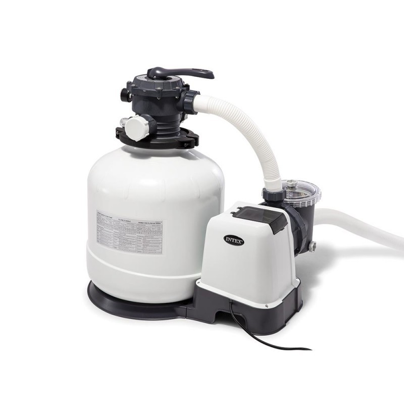 Filtre à sable de capacité 10 m3/h de marque Intex. Le modèle le plus puisant des filtres à sable : convient aux piscines jusqu'à 65 m3. Nouveau design Equipé d'un panneau de Contrà´le digital et d'un programmateur Intégré. Garantie 2 ans. Consommation 550 W. Coloris blanc et noir. En plastique et cuivre. Dimensions du colis 70x46x58 cm. Poids 22 kg.
