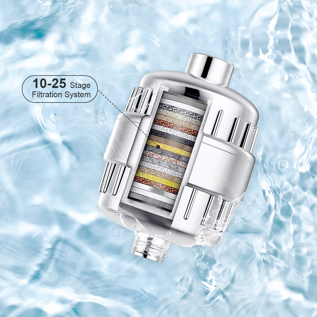 Filtre de douche pour eau dure - Système de filtration en 10-25 étapes