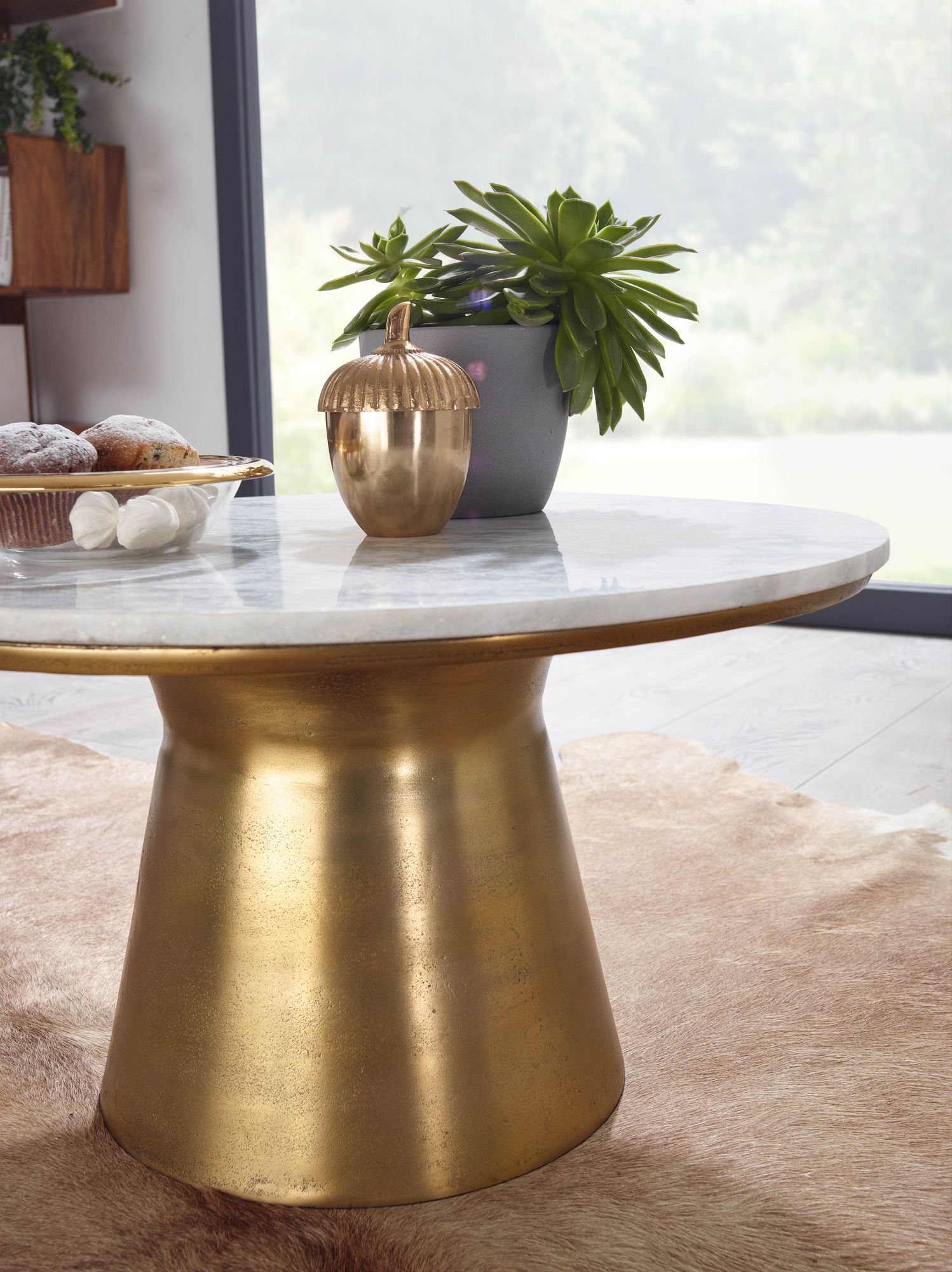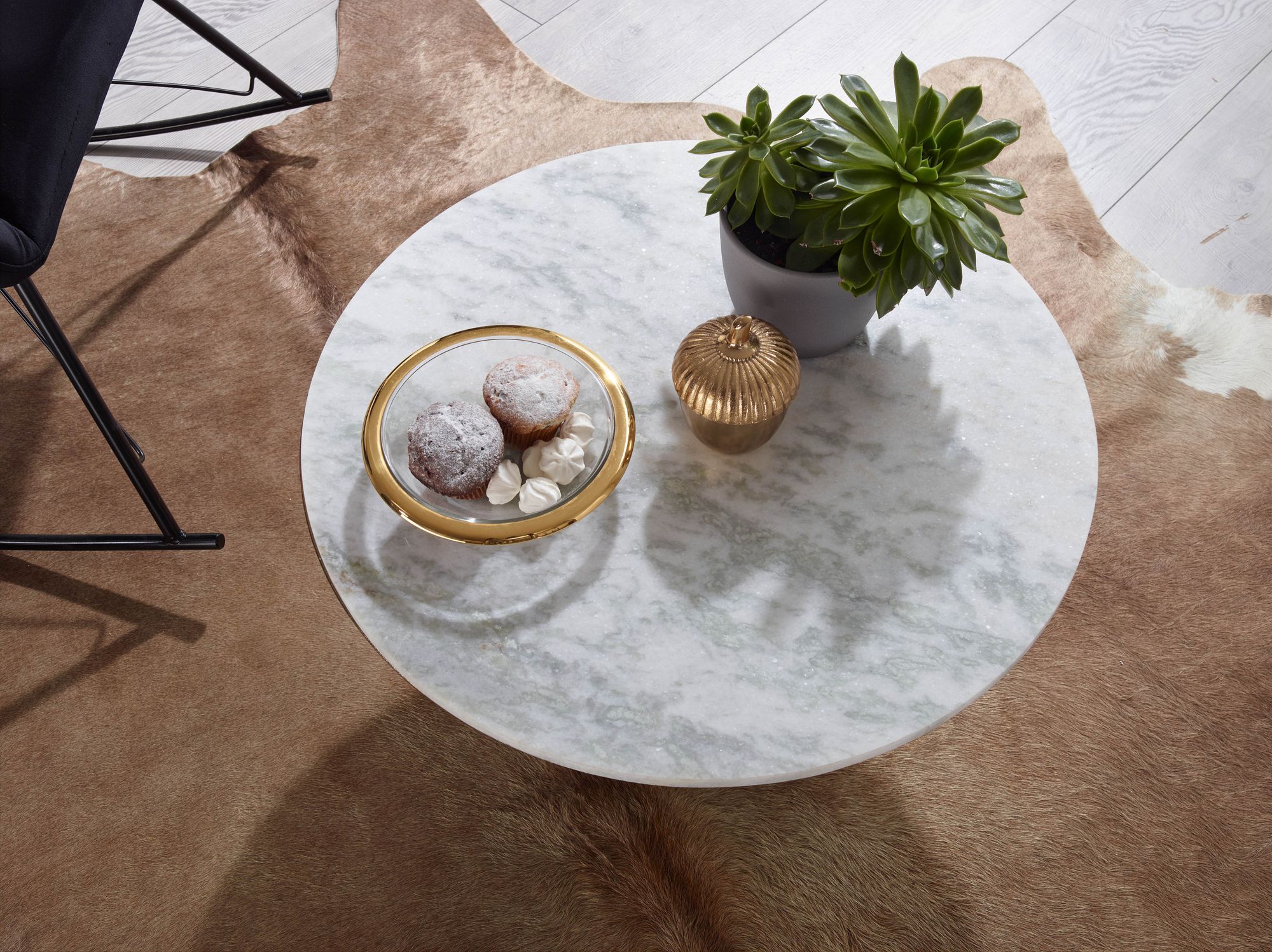 FineBuy Table Basse Ronde Marbre 60x60x34 cm Petite Table de Salon Moderne Blanc