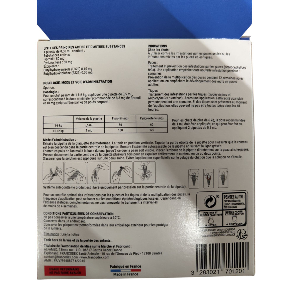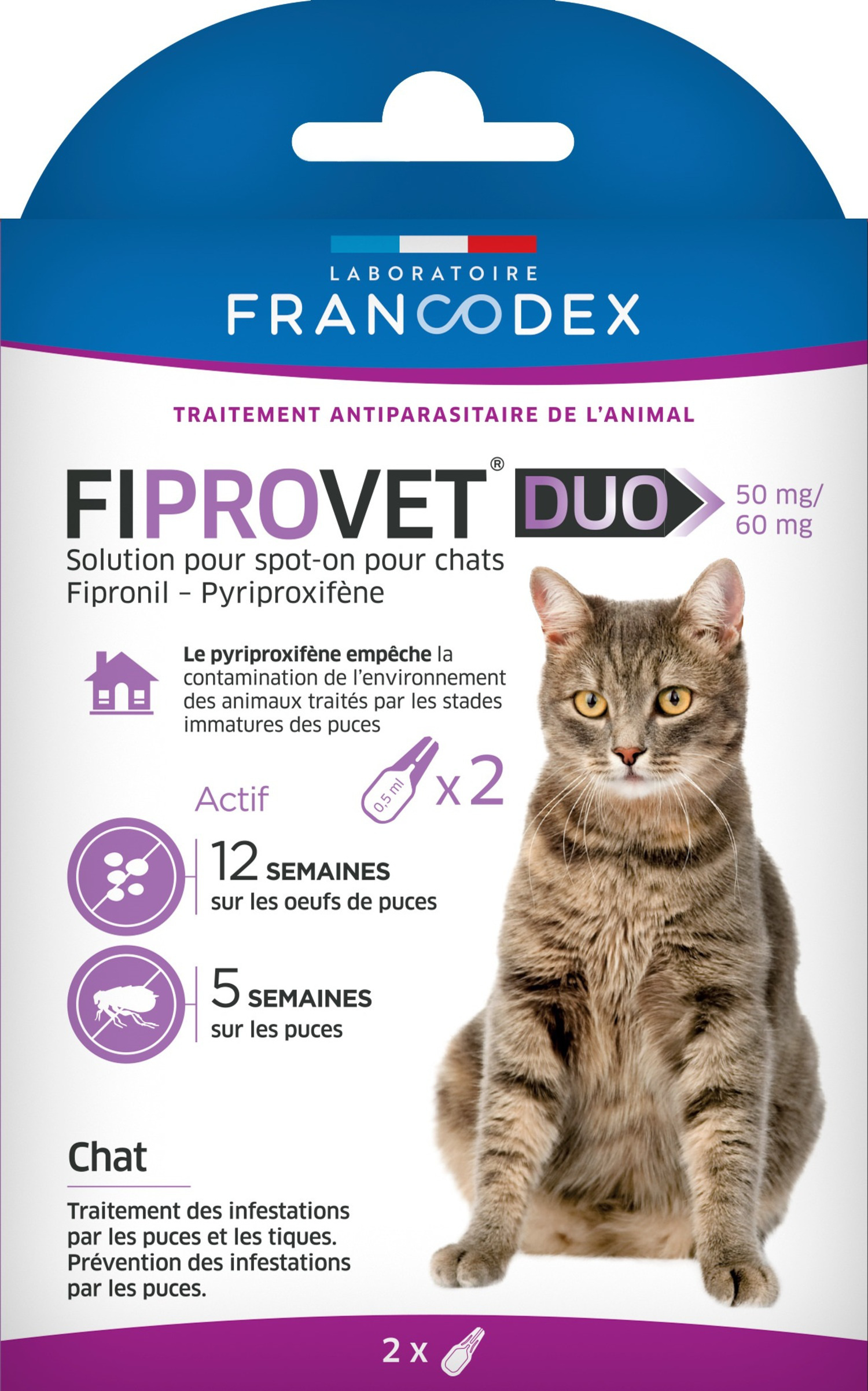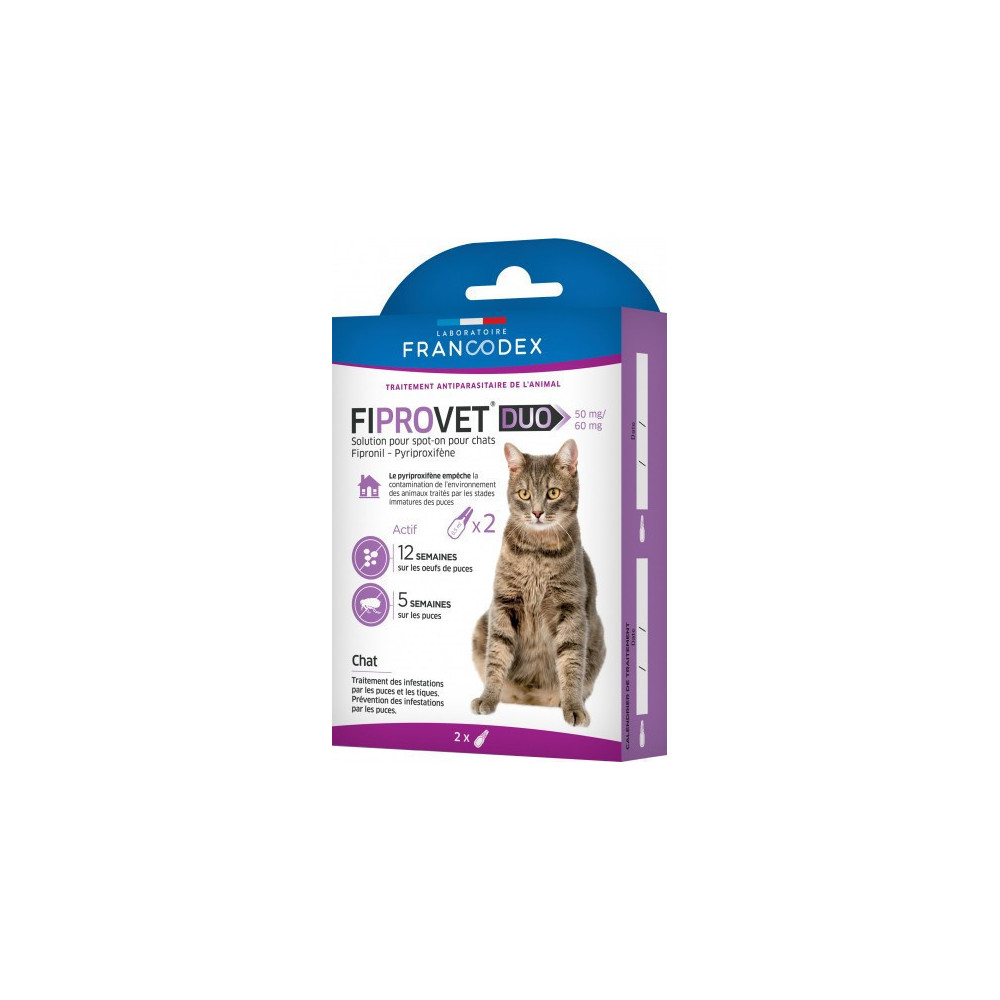 Libellé Fiprovet Duo 50 mg/60 mg - Solution pour spot-on chat x2