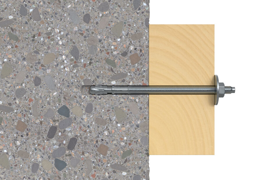 • La rondelle large du goujon FBN II GS crée une surface d'appui plus importante et permet la fixation de constructions en bois.