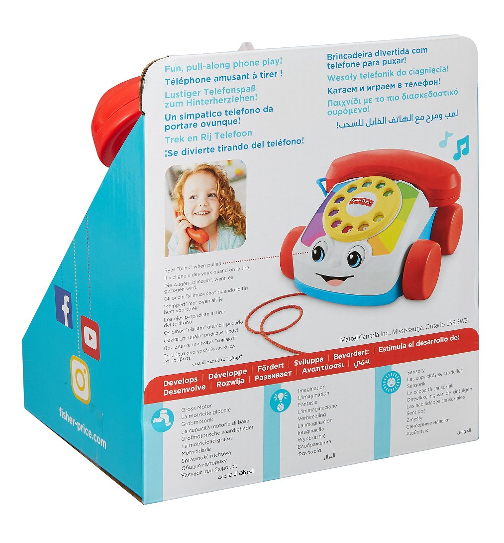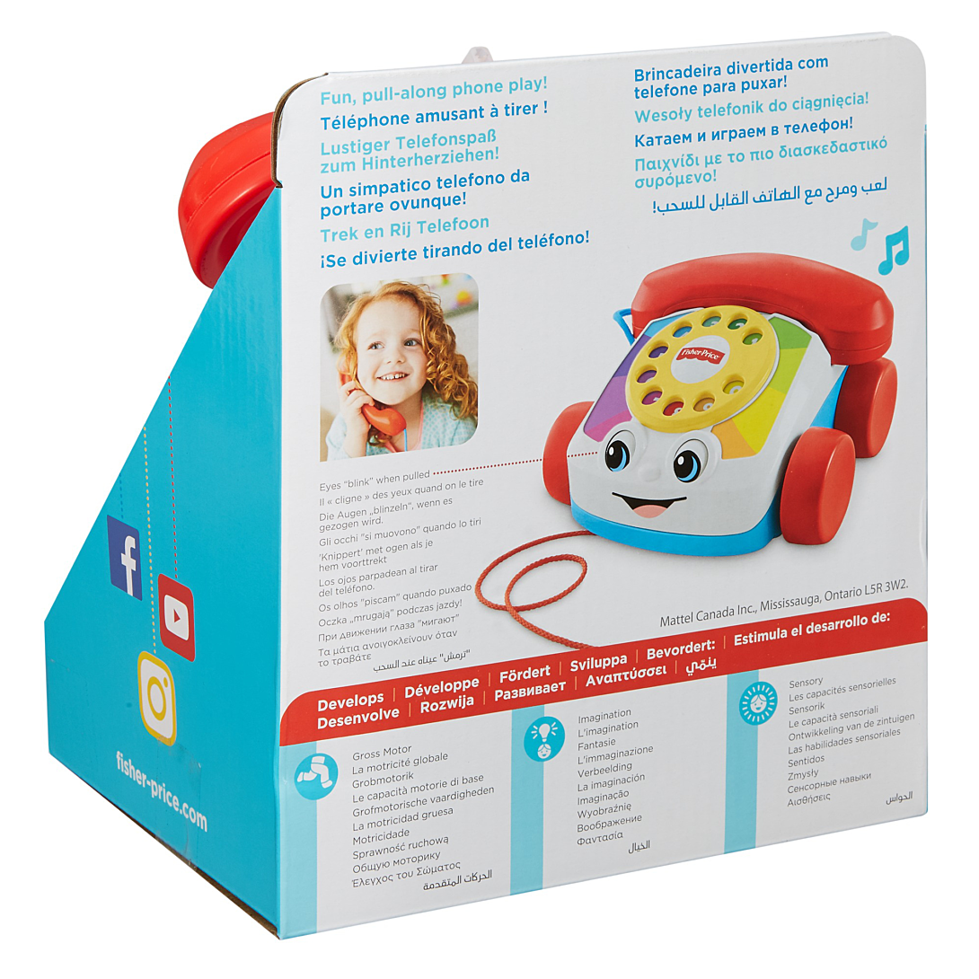 Avec son gentil visage, son cadran tournant et ses sonneries amusantes, sans oublier des yeux qui bougent lorsqu'on le tire, Mon téléphone animé Fisher-Price® encourage bébé à parler et à se promener, comme un pro !