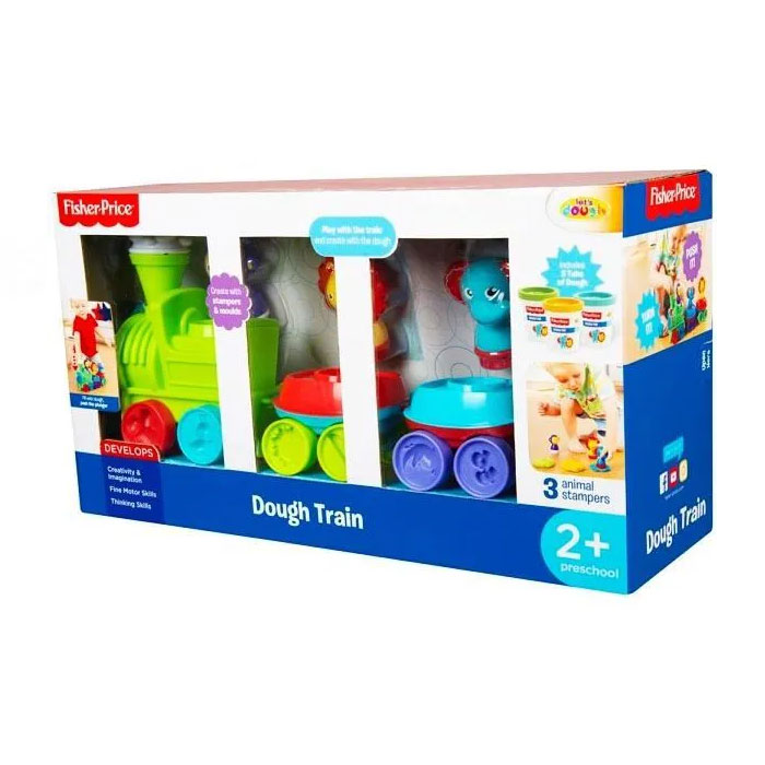 Le train de pâte Fisher Price; spécialement conçu pour aider les enfants à se développer par le jeu. Le train de pâte est parfait pour le développement précoce de l'expression artistique, de la créativité et de l'imagination, de la motricité et de la pensée.Inclus; 3 pots de pâte qui ont intégré des emboutisseurs de pâte et pour rendre notre emballage polyvalent et plus respectueux de l'environnement