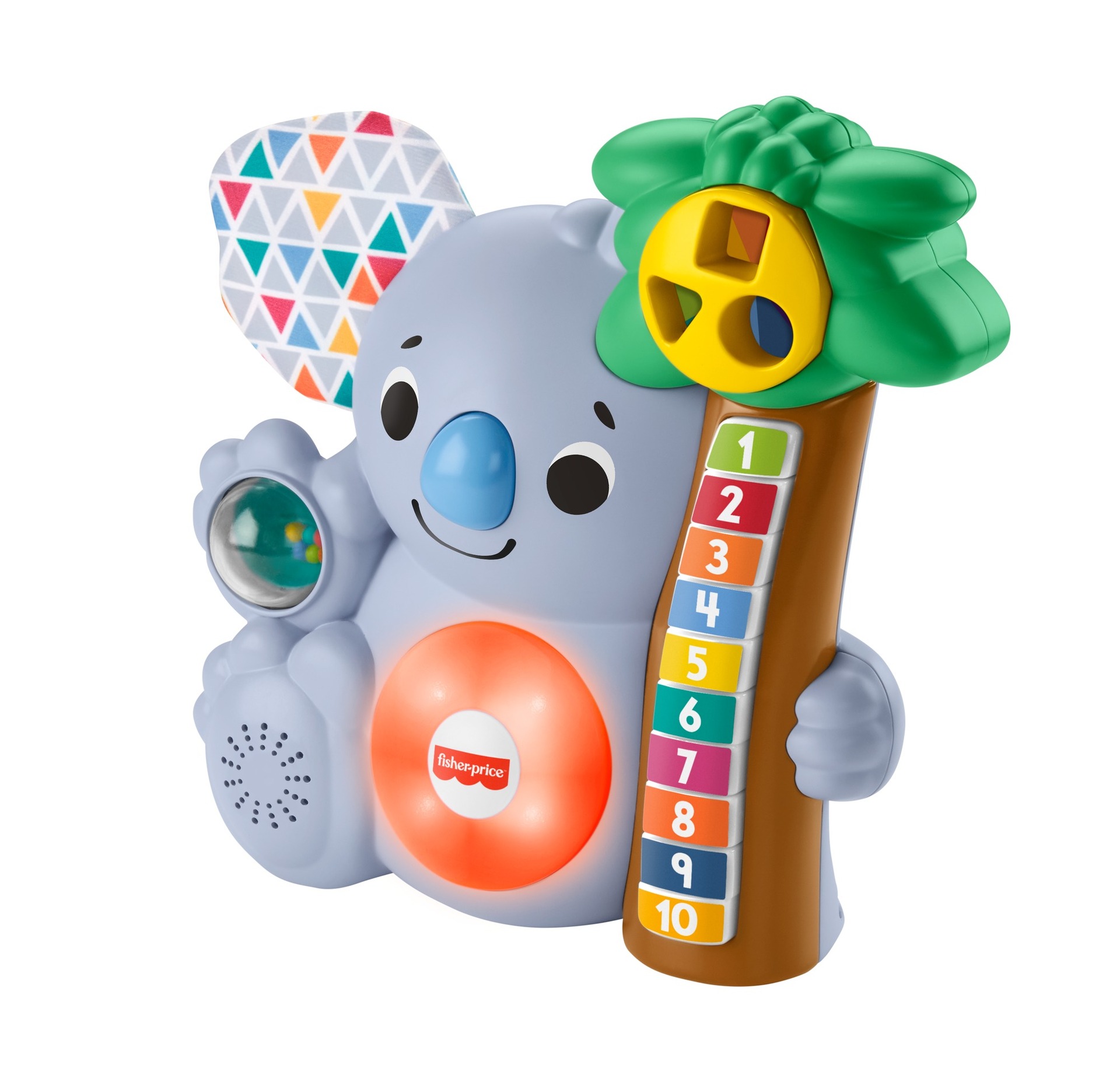| Plus produit | Koala interactif avec musique et lumières pour découvrir les chiffres et les formes, et apprendre à compter jusquà 10\nAppuyez sur les boutons lumineux situés sur larbre ou faites tourner la roue pour activer la musique, les lumières et les phrases.\nOreille souple froufroutante et boule à faire tourner idéales pour la manipulation et lexploration ; ventre qui sallume et poignée pour que bébé puisse emporter son ami partout.\nCollectionnez les autres amis Linkimals pour les voir interagir ! (Articles vendus séparément. Certains produits peuvent ne pas être commercialisés.)\nÀ partir de 9 mois |