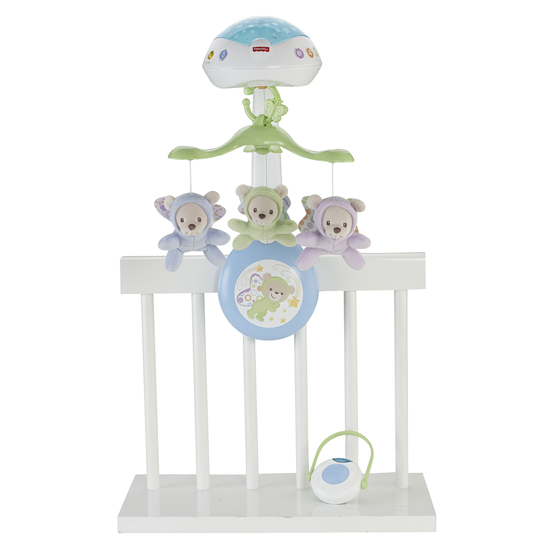 Le Mobile Doux Rêves Papillon 3 en 1 de Fisher-Price® permet d’apaiser et de réconforter bébé, de nouveau-né à jeune enfant. Les nouveau-nés vont adorer admirer le mobile motorisé avec projection de lumières constellées et trois réglages audio apaisants. Lorsque bébé grandit, détachez le mobile amovible et transformez le produit en veilleuse musicale et lumineuse pour conserver une bonne routine de sommeil. Vous pouvez même attacher le mobile sur la capote de la poussette pour divertir bébé lors d’une promenade ! Ce produit peut ne pas se fixer à tous les modèles de lits d’enfant.