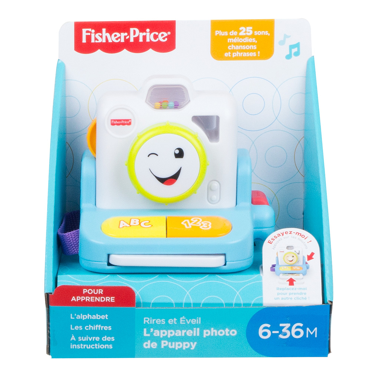 Plus produit Appareil photo factice avec lumière, musique et sons pour faire comme les grands ! § Chansons amusantes, sons et phrases pour découvrir en français les chiffres, lalphabet et plus encore § Appuyez sur le bouton déclencheur pour « prendre une photo » de Puppy, puis repoussez la photo à lintérieur pour recommencer § Poignée souple facile à saisir, rouleau cranté à faire tourner et billes qui font du bruit pour des moments de jeu interactifs § Pour les enfants de 6 mois à 3 ans.