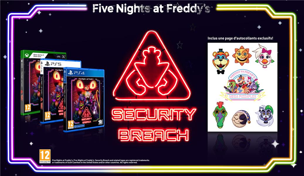 Five Nights at Freddy's: Security Breach est le dernier volet de la franchise vidéoludique horrifique adulée par des millions de joueurs à travers le monde. Incarnez Gregory, un jeune homme coincé pour la nuit dans le Freddy Fazbear's Mega Pizzaplex. Avec l'aide de Freddy Fazbear en personne, Gregory doit survivre et échapper aux personnages de Five Nights at Freddy's (réinventés et rejoints par de toutes nouvelles menaces effroyables) qui le traquent sans relâche. LES CHASSEURS ET LEUR PROIE - Une fois les protocoles nocturnes engagés, les animatroniques de Freddy Fazbear's Mega Pizzaplex poursuivront inlassablement tout intrus. Glamrock Chica, Roxanne Wolf, Montgomery Gator et la vigile de Pizzaplex, Vanessa, retourneront tous les stands de pizza et de barbe à papa s'il le faut. Donc, mieux vaut ne pas rester trop longtemps au même endroit. S'ADAPTER POUR SURVIVRE - Accédez aux caméras de sécurité du bâtiment pour surveiller les alentours et échapper au danger.