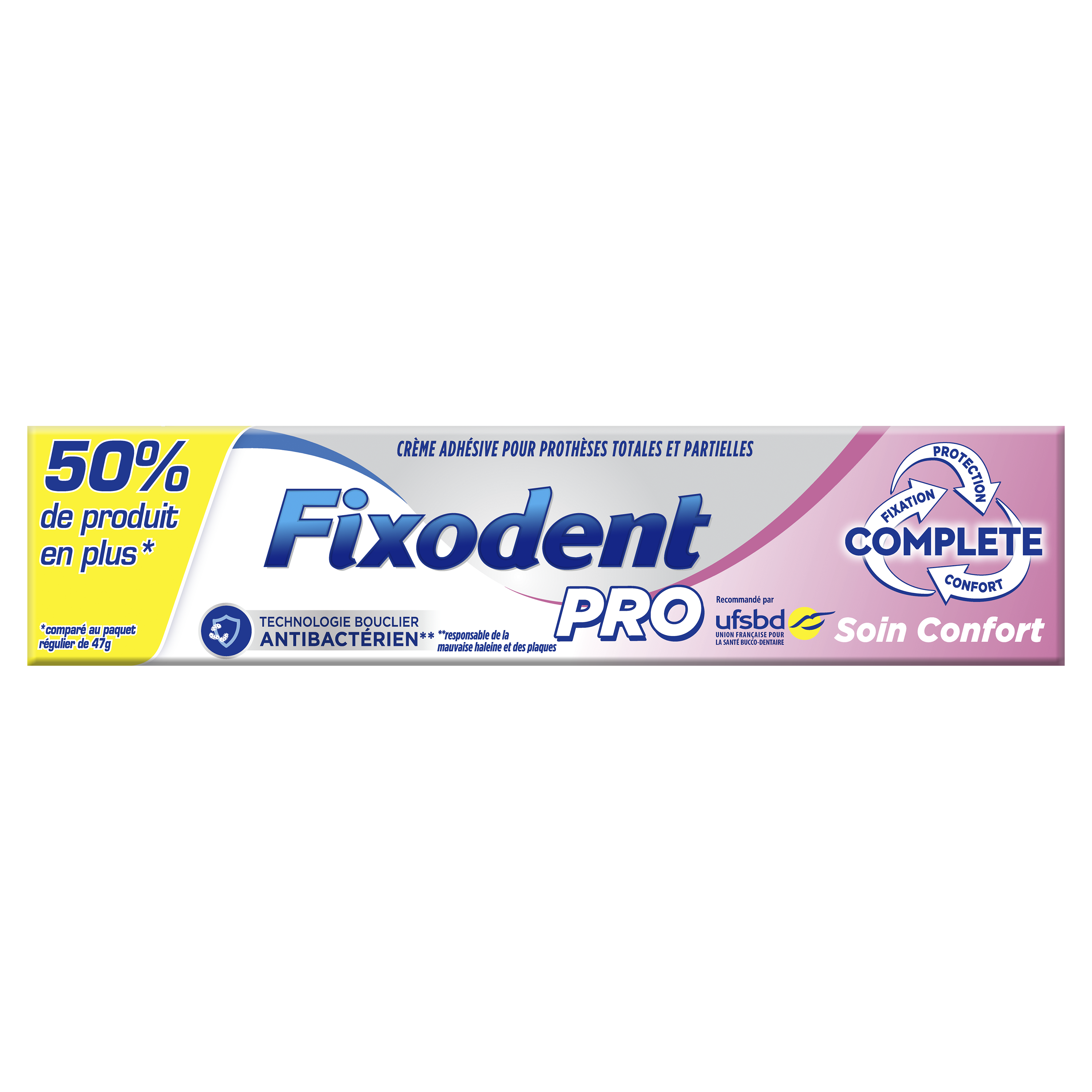 | Libellé | Fixodent Pro Complete Soin Confort Crème Adhésive Pour Prothèses 70.5g |
