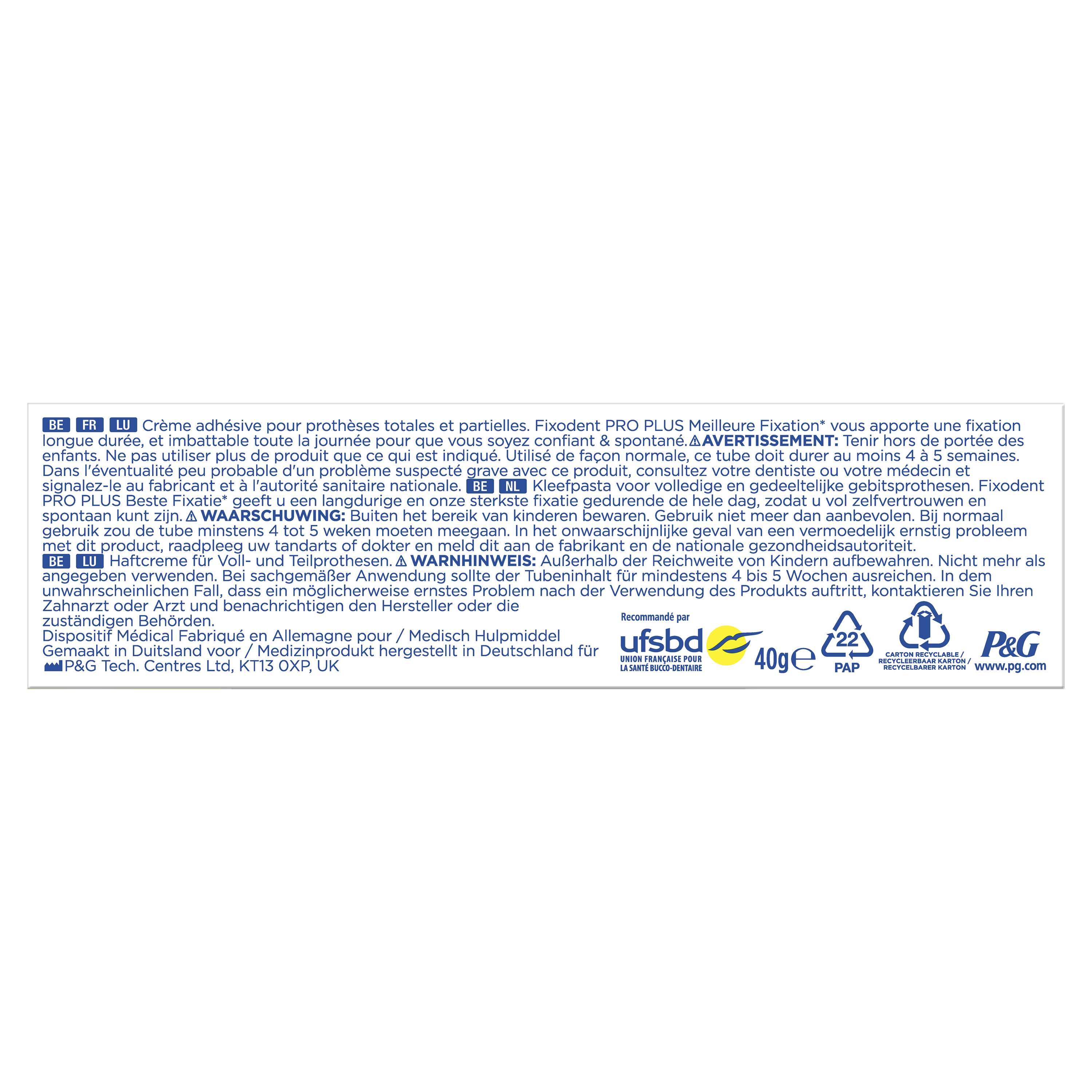 | Libellé | Fixodent pro plus la meilleure fixation crème adhésive pour prothèses dentaires 40g |