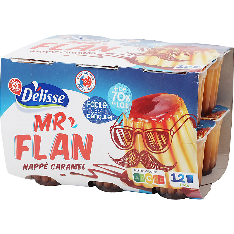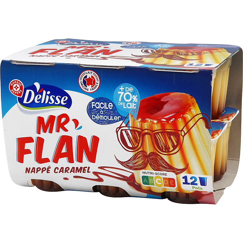 Flan vanille nappé caramel - 12 x 100 g - DELISSE