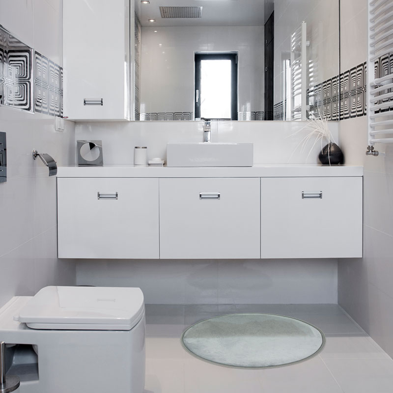 Tapis extra doux aux reflets moirés, avec une couche de mousse pour votre confort, envers antidérapant et lavable en machine.