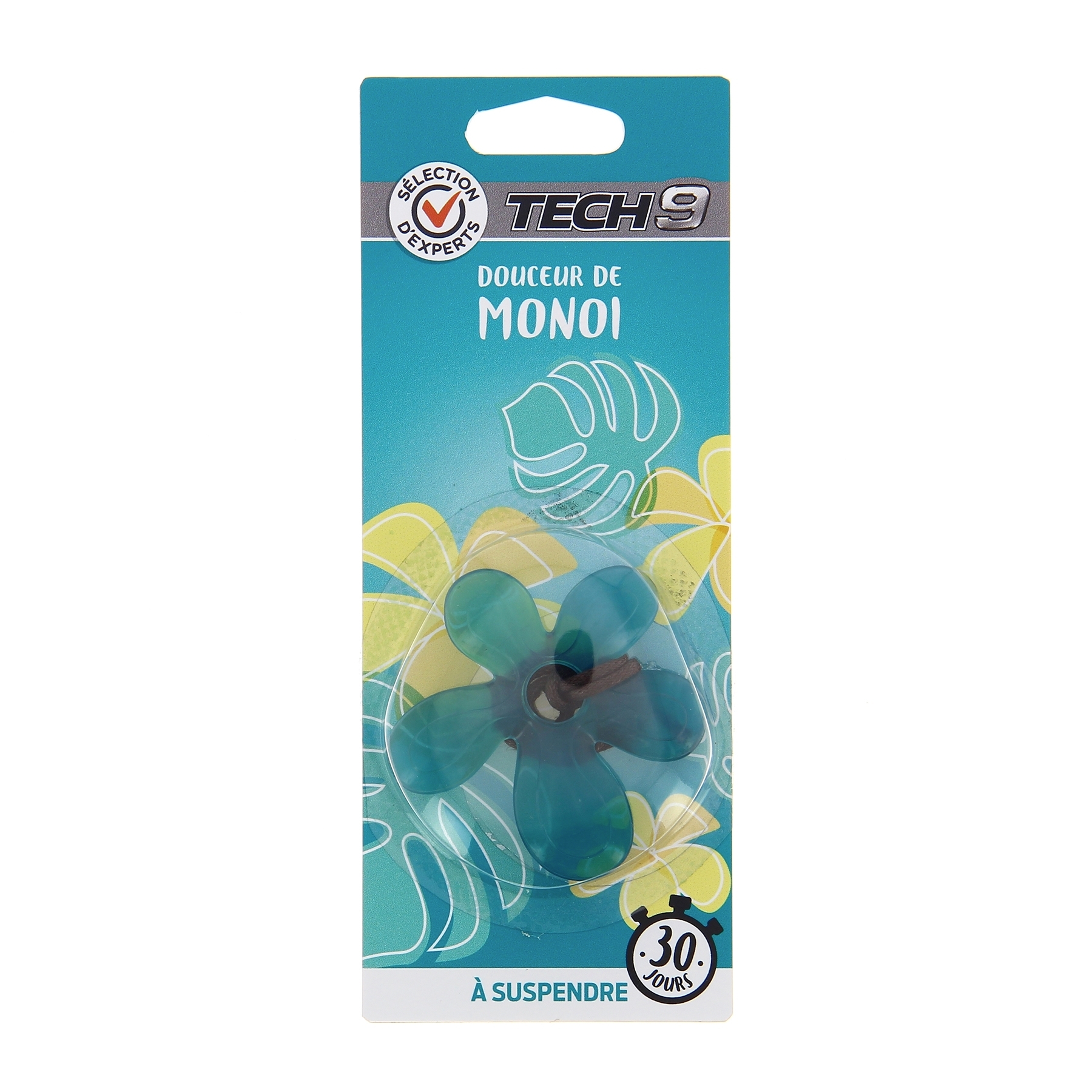 La fleur TECH9 diffuse un agréable parfum de monoi dans votre habitacle pendant 30 jours. Elle est munie d'une petite languette pour le suspendre au rétroviseur de votre véhicule.