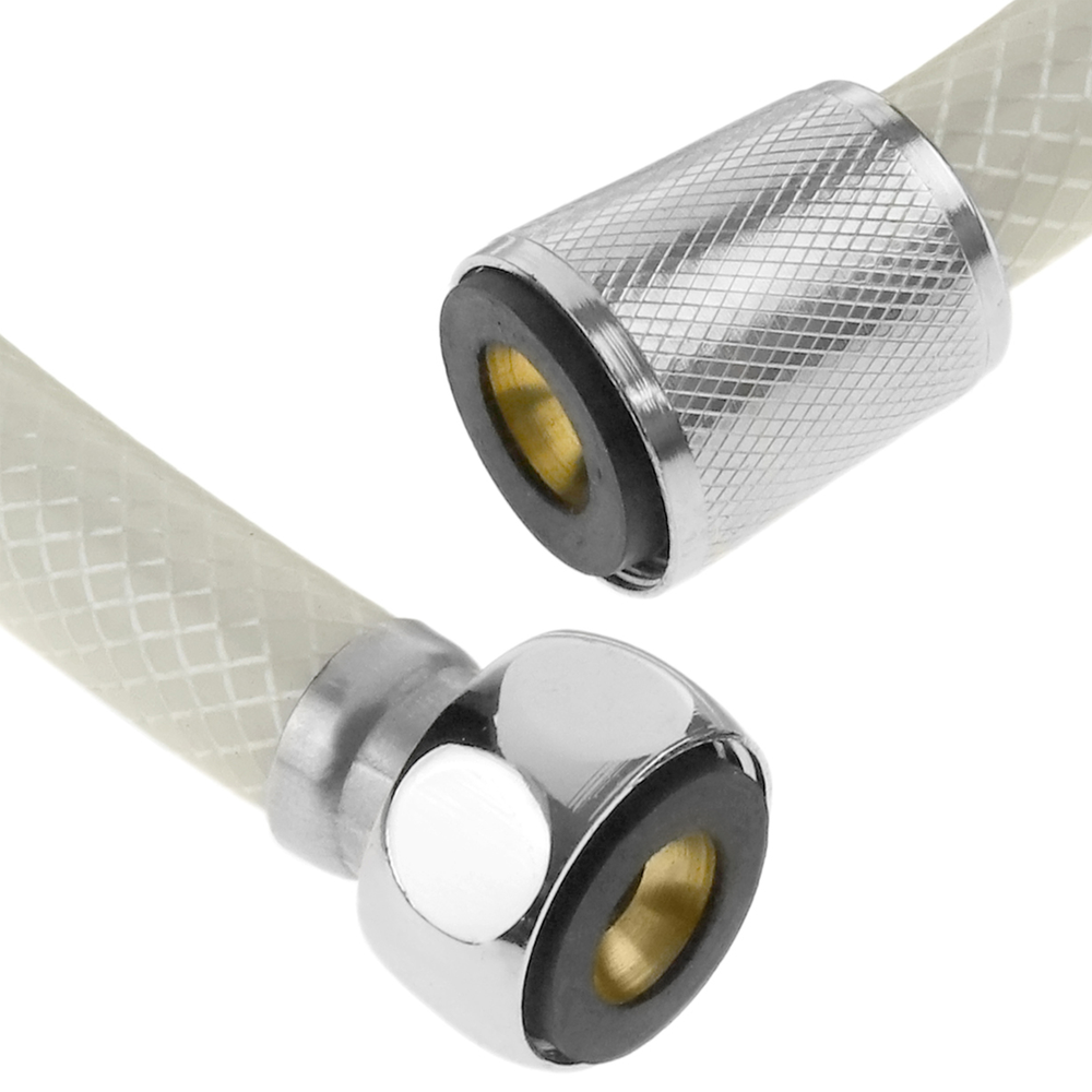 Tuyau pour pomme de douche. Idéal pour les nouvelles installations ou les rénovations de salle de bain. Aussi pour remplacer les flexos endommagés ou endommagés. Spécifications Tuyau de douche. Longueur: 1,7 m. Matière: PVC blanc. Haute résistance.