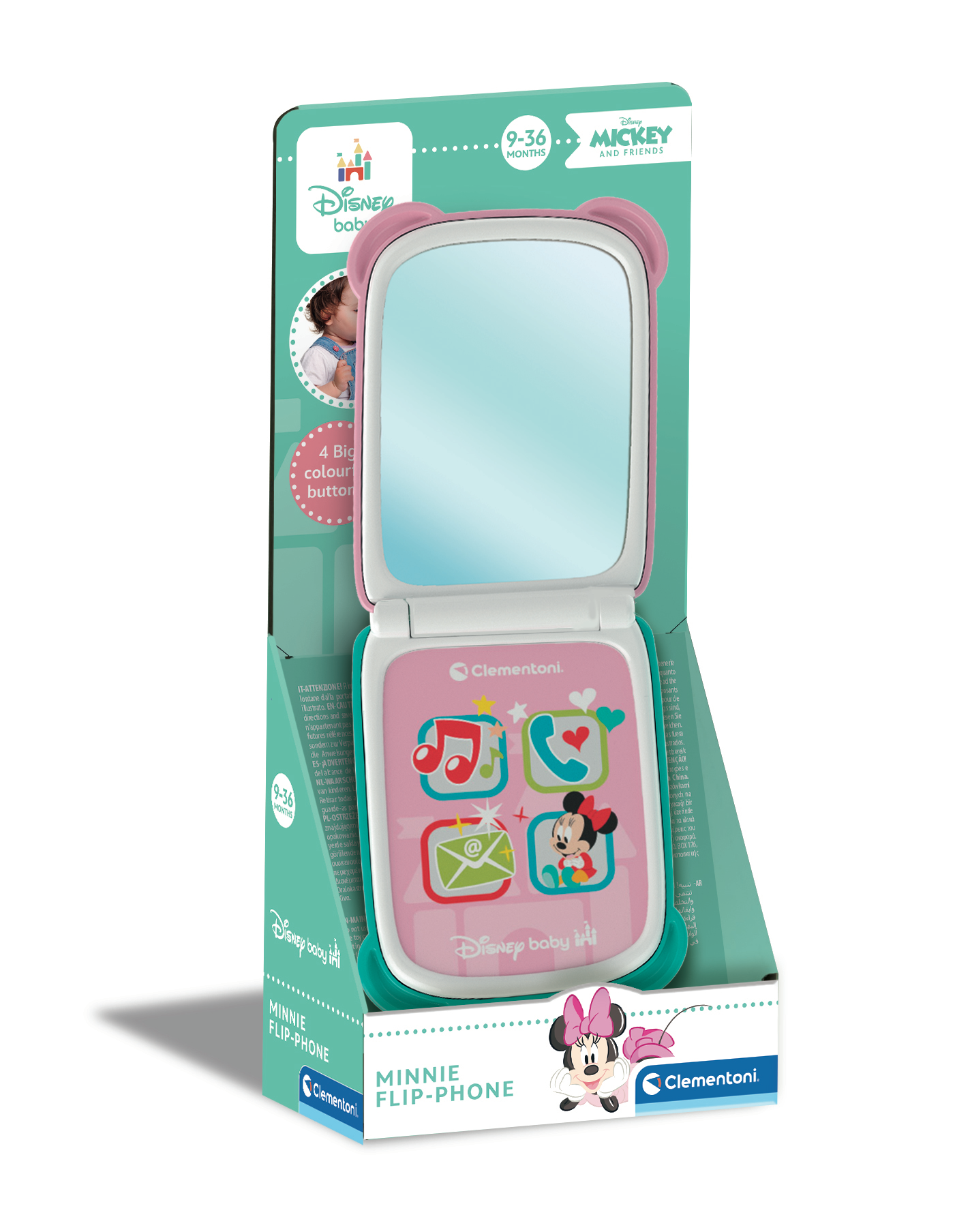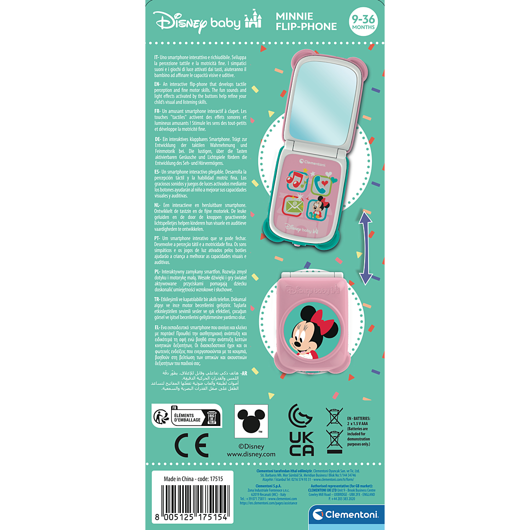 • Un smartphone à clapet à l'effigie de Minnie spécialement conçu pour les tout-petits ! • Avec 4 boutons lumineux, des effets sonores et un miroir pour simuler des appels vidéo. • Un jouet d'imitation pour "téléphoner" comme les plus grands.