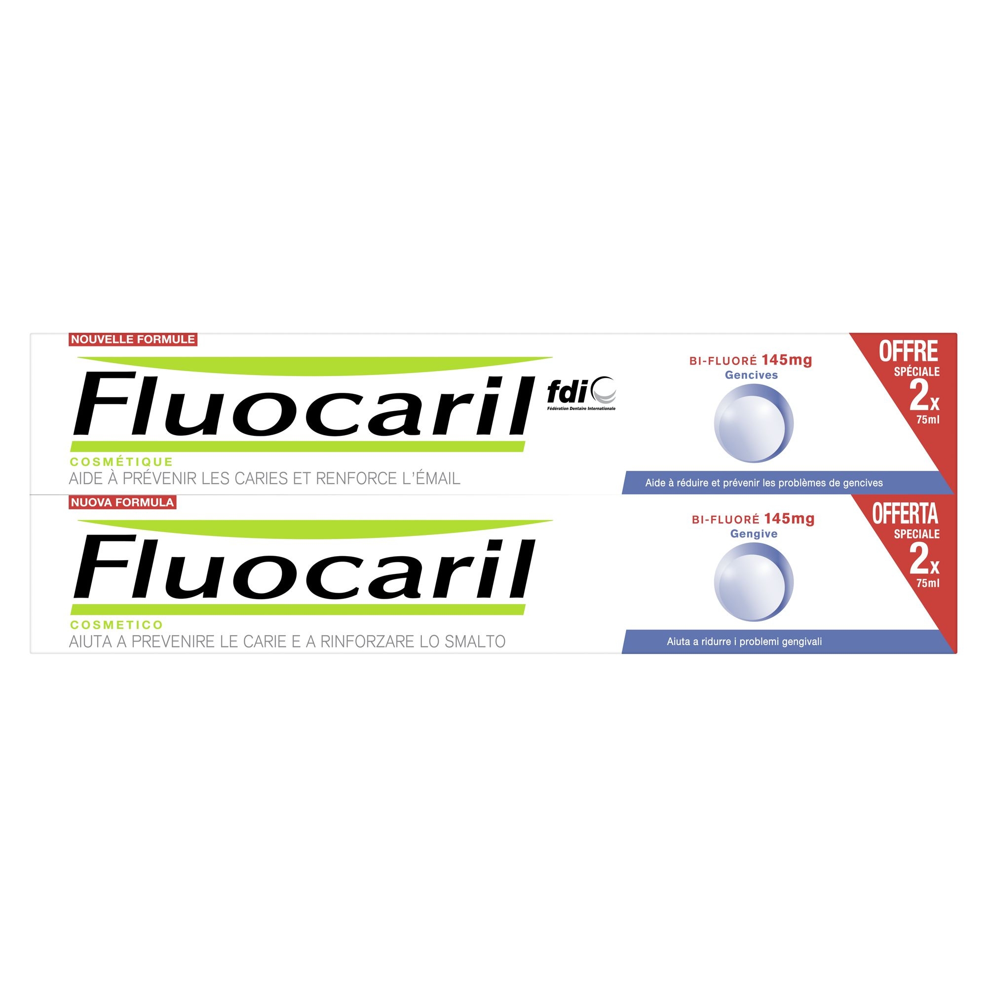 | Libellé | Fluocaril Dentifrice Gencives Bi-Fluoré 145mg lot 2x75ml |