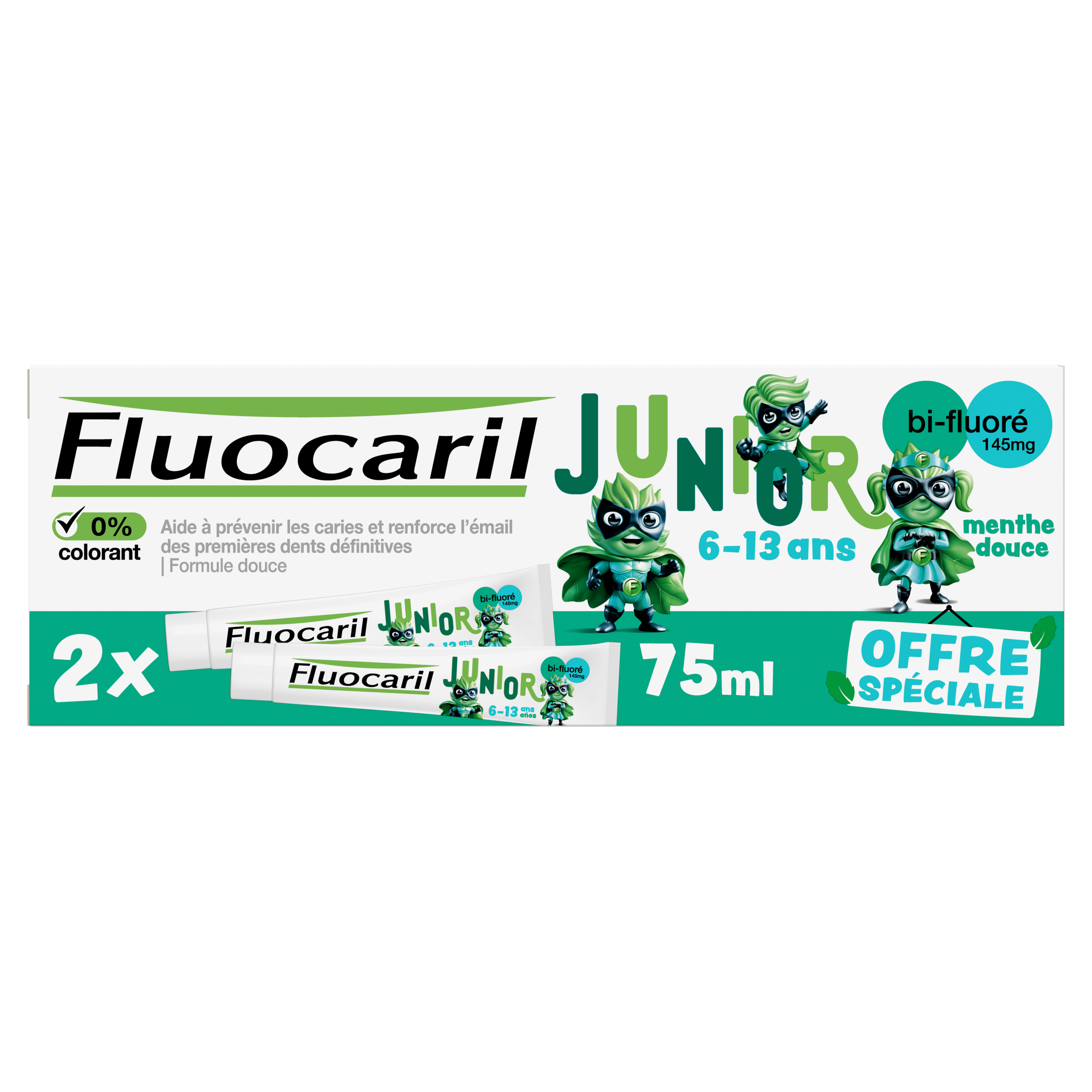 | Libellé | Fluocaril Dentifrice Junior 6-13 ans Menthe Douce 2 x 75ml |