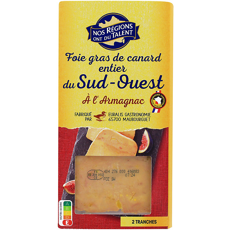 Foie gras de canard entier du sud-ouest à l'Armagnac 2 tranches - 80 g - NOS REGIONS ONT DU TALENT