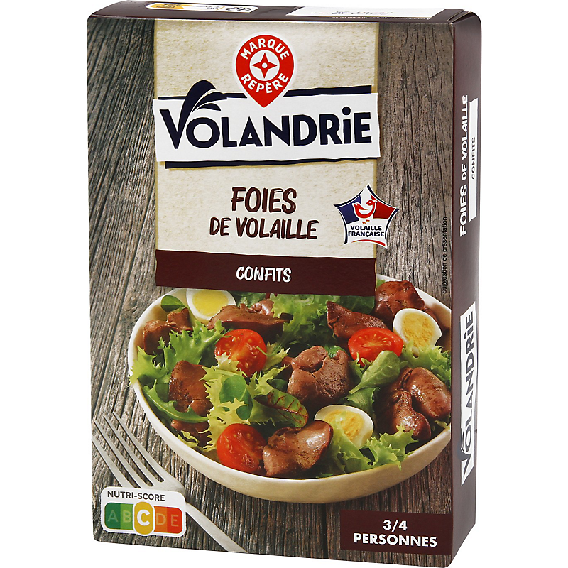 Foies de poulet traités en salaison, confits dans la graisse de canard VOLANDRIE