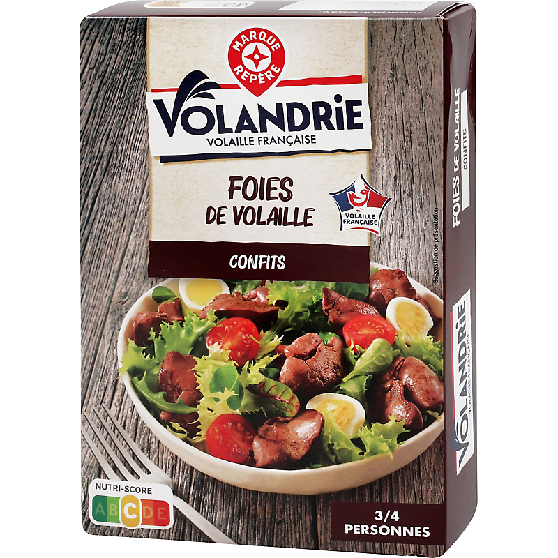 Foies de poulet traités en salaison, confits dans la graisse de canard VOLANDRIE