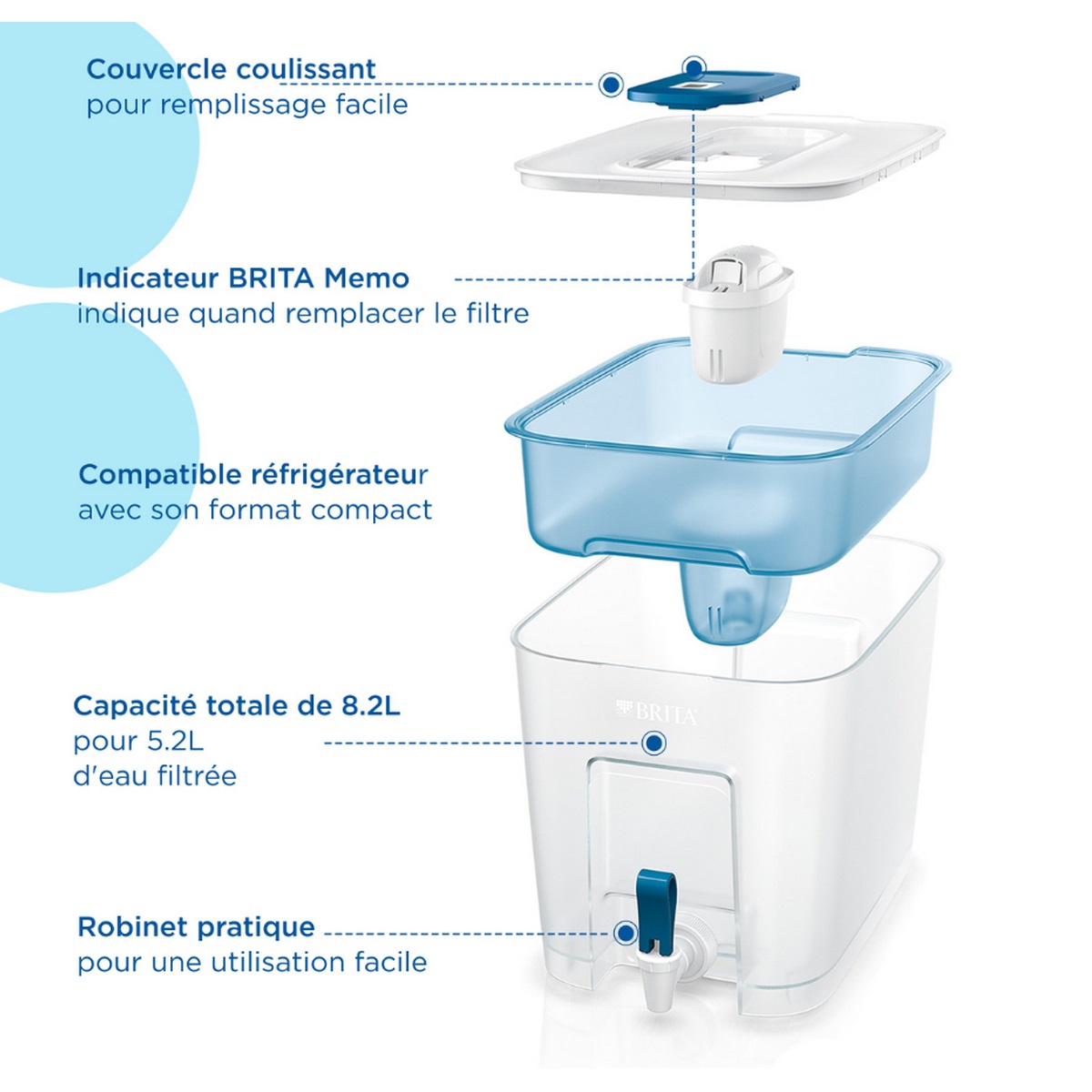 | Libellé | Fontaine à eau filtrée 8.2l bleue flow maxtra pro all-in-1 - 1051126 - brita |