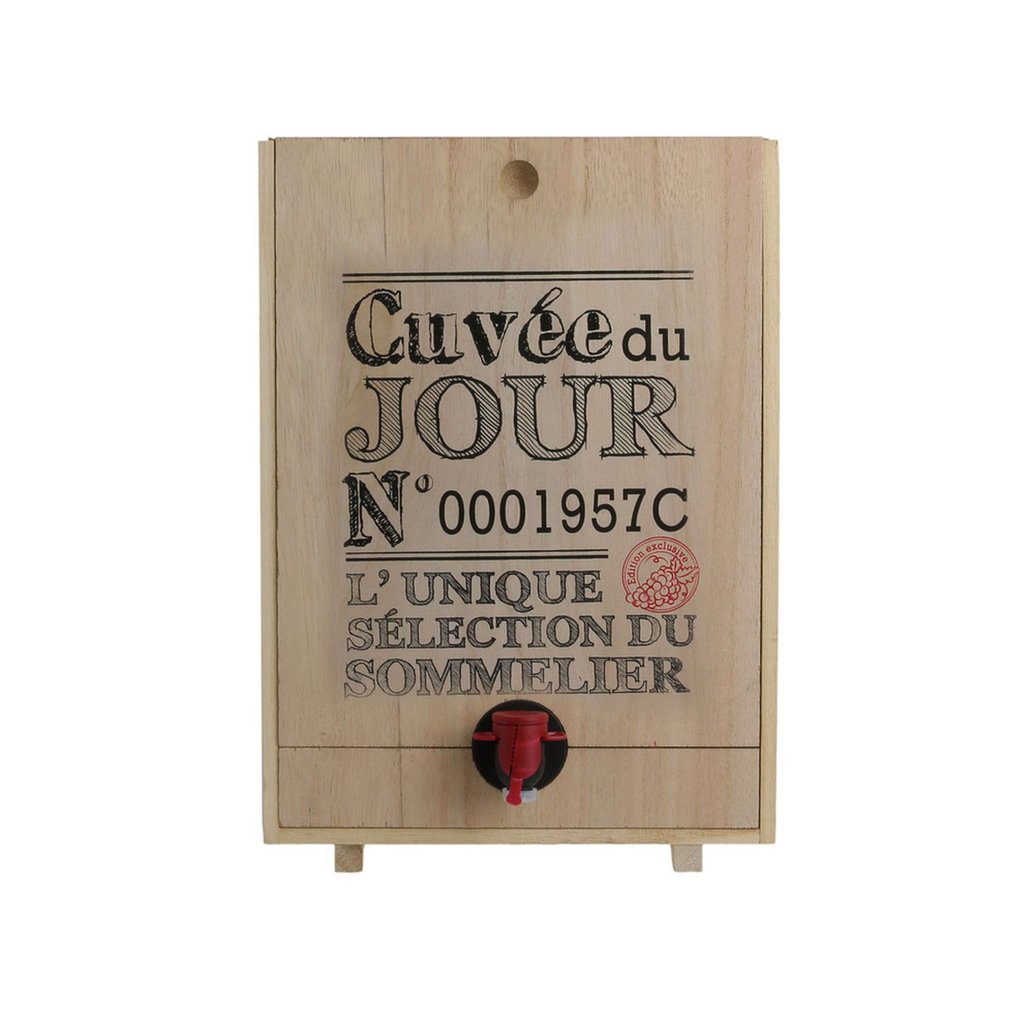 Servez vos vins avec style et authenticité grâce à ce distributeur en bois brut clair ! Le coffret abrite une poche qui vous permettra de le laisser en libre service lors de vos réceptions. Pas de panique, le changement de poche se fera avec facilité grâce au panneau coulissant prévu à cet effet.