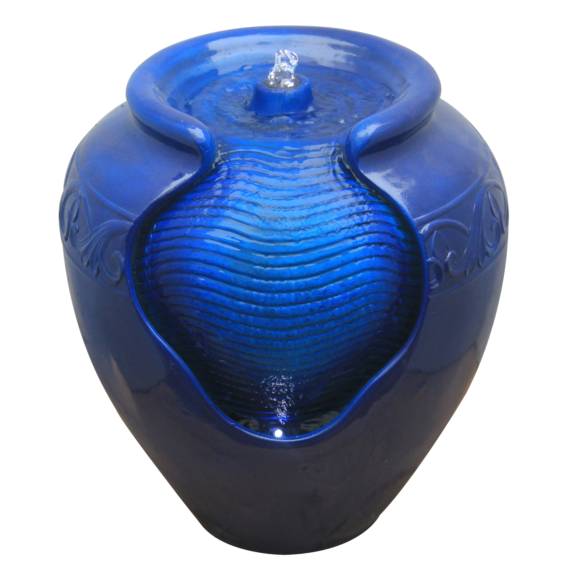 Fontaine extérieure de jardin décoration chute d’eau cascade pot amphore bleu pompe éclairage LED Teamson