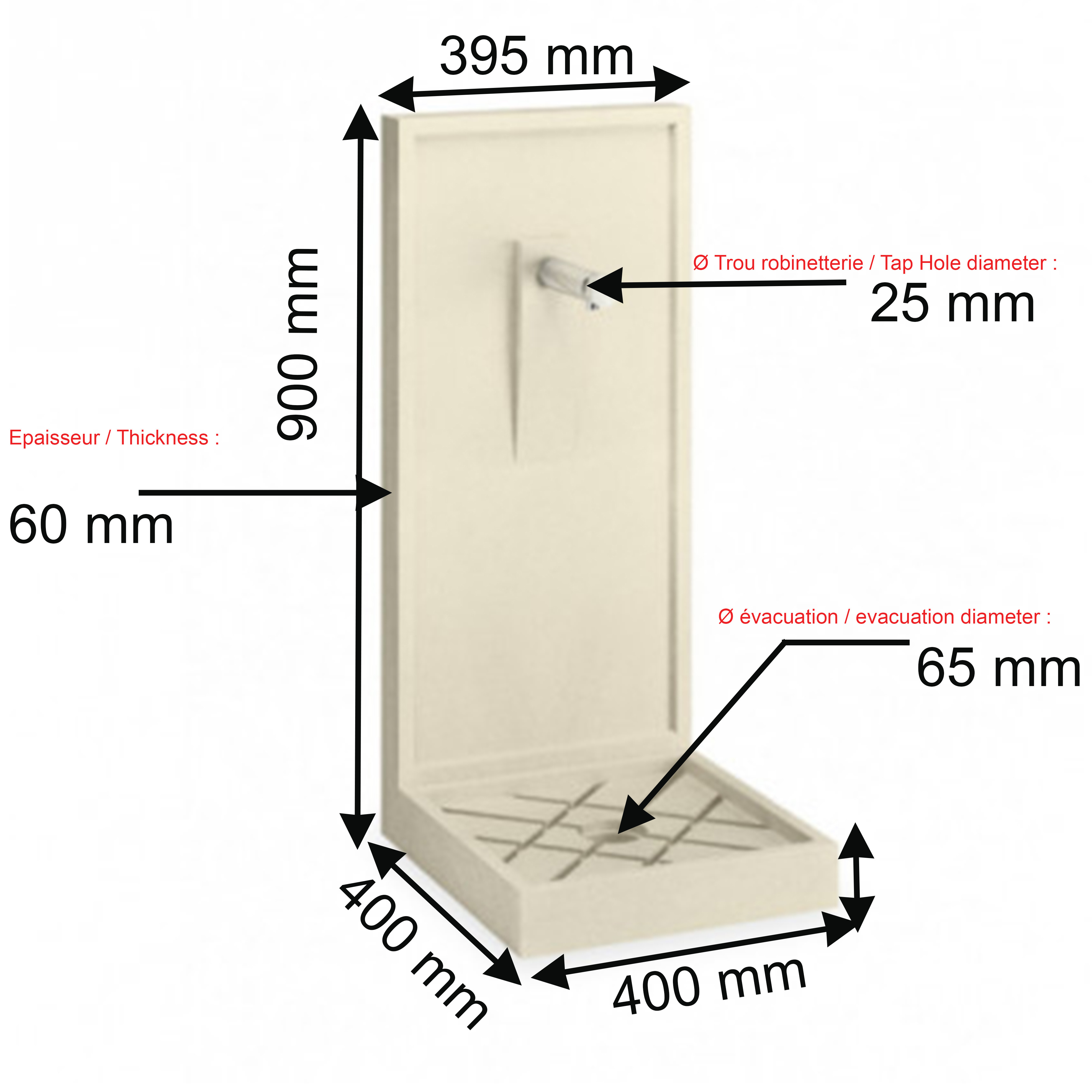 • Fontaine fabriquée à partir de granulats de marbre naturels, résistante au gel selon la norme UNE 127.024/1999EX et UNE EN1339. • Fontaine a adossé, de couleur Champagne RAL 1733 teinté dans la masse. • Dimension extérieure : Longueur 400 x Largeur 460 mm x Hauteur 900 mm • Dimension receveur : Longueur 400 x Largeur 400 mm x Hauteur 70 mm • Ø évacuation : 65 mm. Ø trou robinetterie : 25 mm. Livrée sans bonde ni robinetterie. Fontaine décoratives en béton imitation pierre haute résistance pour disposer d’un point d’eau dans le jardin. Couleur Champagne. Finition lisse. Livrée sans bonde ni robinetterie. Design neutre et épuré qui s'adapte à tout type d'environnements. Fontaine a adossé de couleur Champagne RAL 1733 teinté dans la masse. Nos produits, du fait de son haut contenu en ciment, peuvent présenter des possibles fissurations superficielles qui n’affectent ni les caractéristiques ni la qualité de la finition des pièces. Les produits peuvent présenter de légères nuances de teintes ainsi que des traces de remonté de chaux qui s’estomperont dans le temps.