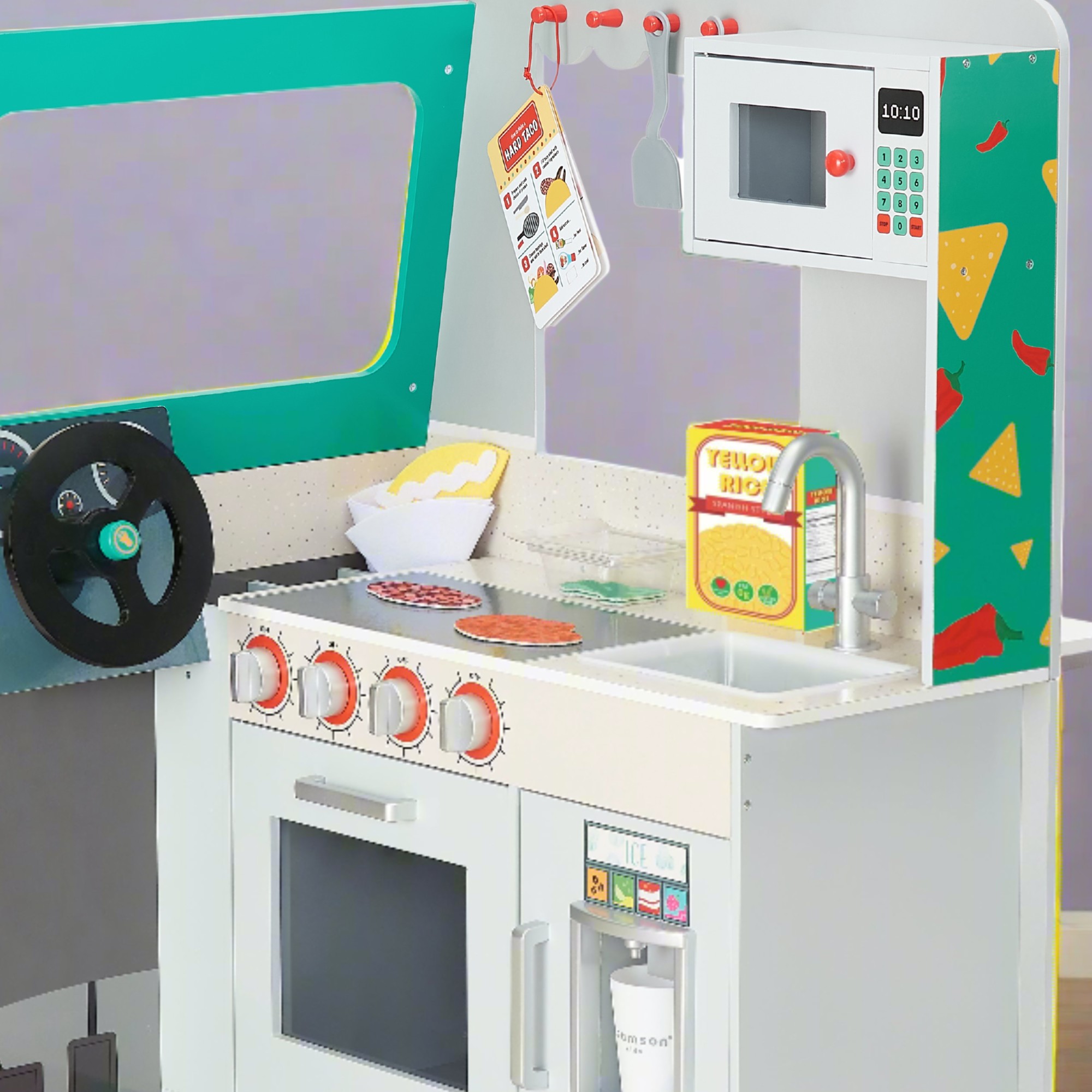 Food Truck en Bois, Cuisine de Jeu pour Enfants, Camion Taco Ludique