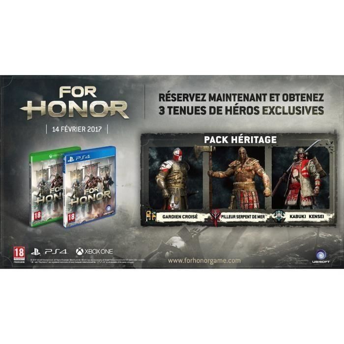 For Honor est un jeu compétitif de combat au corps-à-corps en vue extérieure mêlant rapidité, stratégie et coopération et offrant des combats rapprochés intenses en multijoueur. Découvrez le chaos, la fureur et la brutalité du combat et tracez avec vos amis un sillage de dévastation dans le rôle d'impitoyables Vikings, de redoutables Chevaliers et d'impassibles Samouraïs. L'innovant système Art of Battle (Art du combat) vous permet de ressentir la puissance de chaque coup, la force de chaque impact et le poids de l'arme dans votre main.