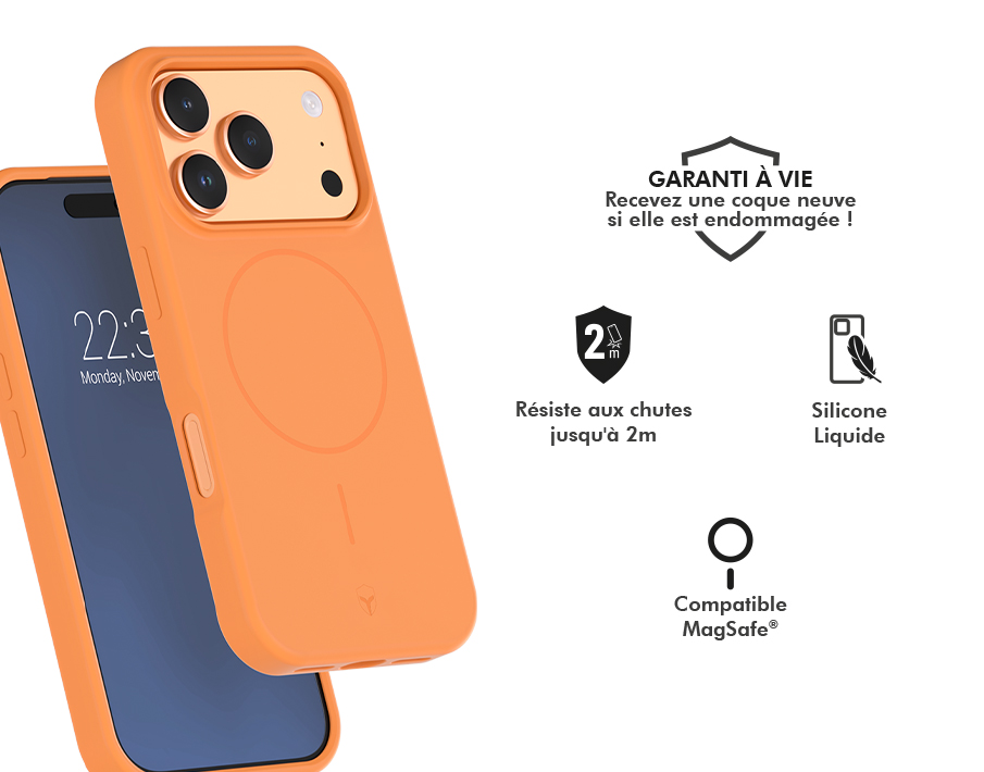 | Libellé | Force Case Coque en Silicone pour iPhone 17 Pro Compatible MagSafe Antichoc 2m Orange |