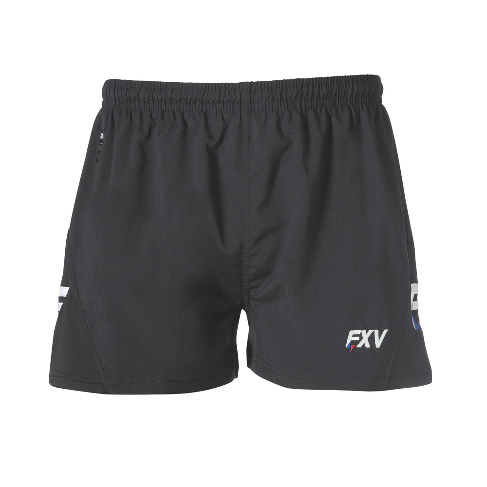 FORCE XV SHORT DE RUGBY FORCE PLUS Marine Matière : 97% polyester, 3% elasthanne - 200gr Construction multi panneaux pour une plus grande aisance. Adapté à la pratique du rugby en terme de coupe et de résistance. Coutures renforcées. Ceinture élastique avec cordon de serrage. Logo ‘’FXV’’ et ‘’F’’ en broderie. Empiècements en PES élasthanne Tailles : S au 4XL