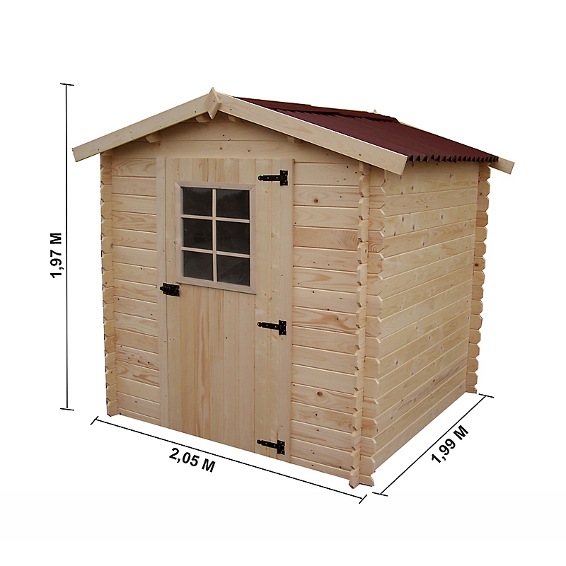 - Parois – Madriers avec rainure languette en sapin épaisseur 20 mm. Coupe chalet pour un assemblage des parois en angle solide et étanche. Coupe biseautée en bout de lames.